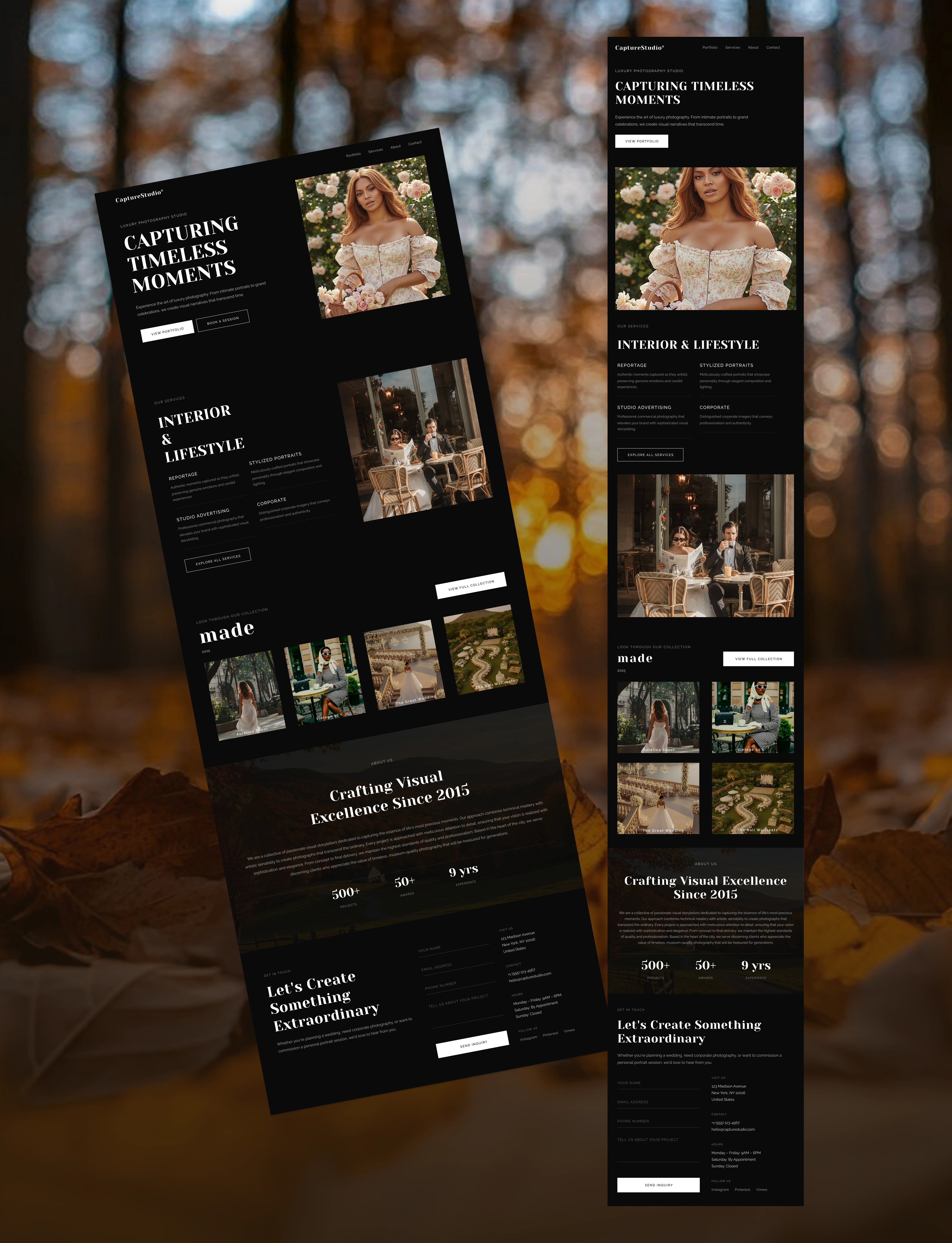 This project is a website design for a photography studio focused on creating a premium, timeless, and emotionally driven digital presence. The goal was to let the photography speak first, while the interface quietly supports the work without distraction.