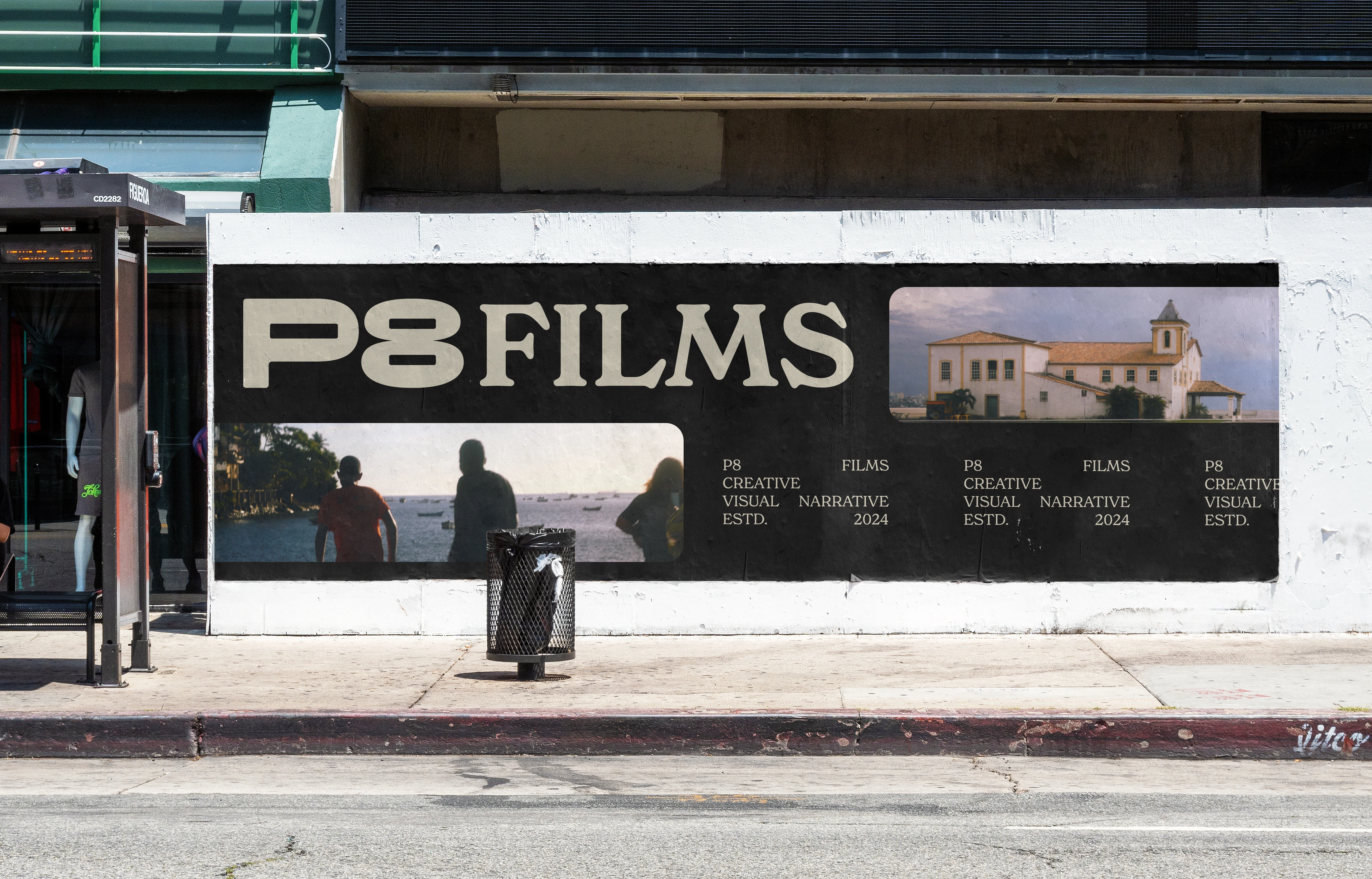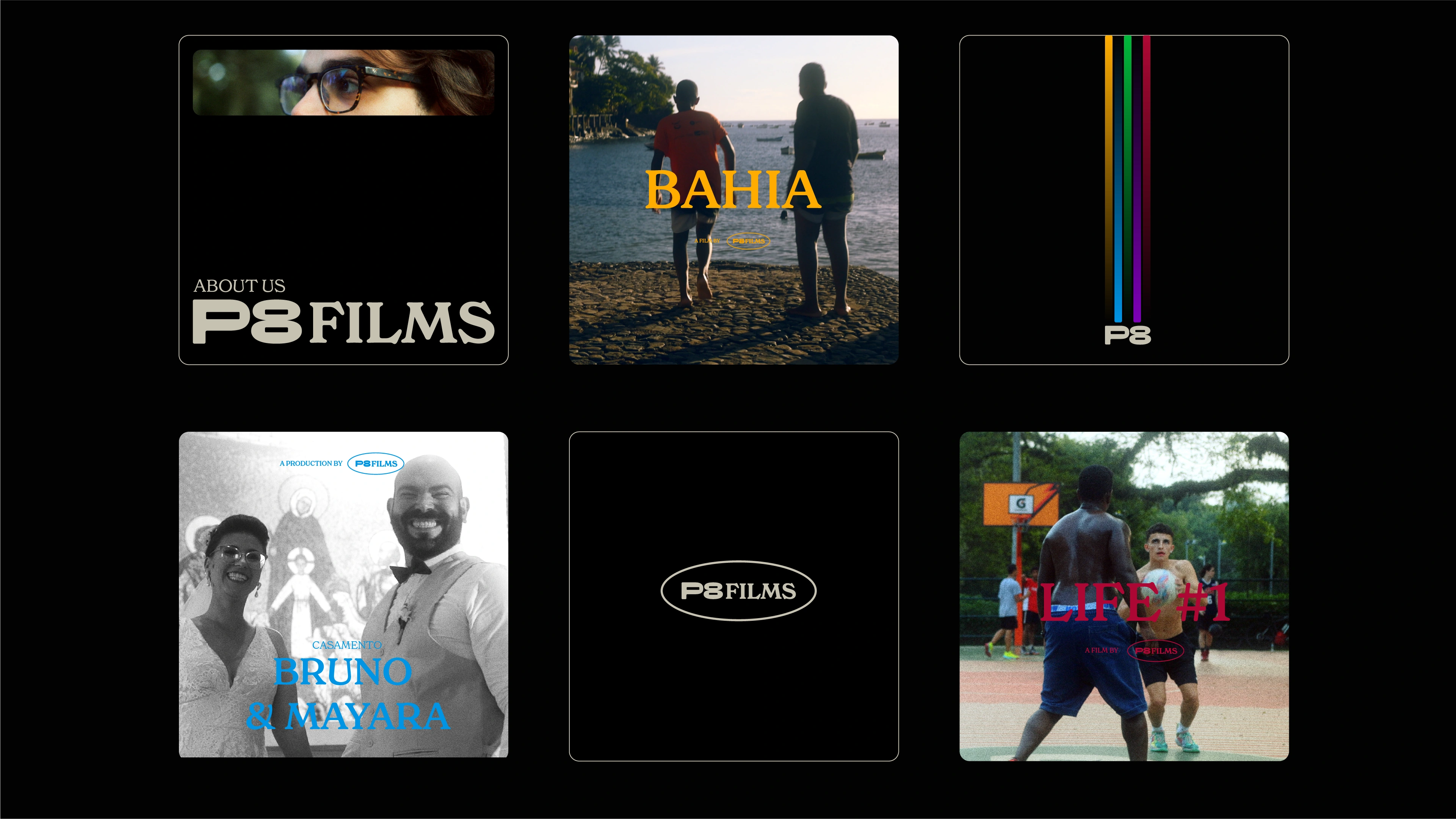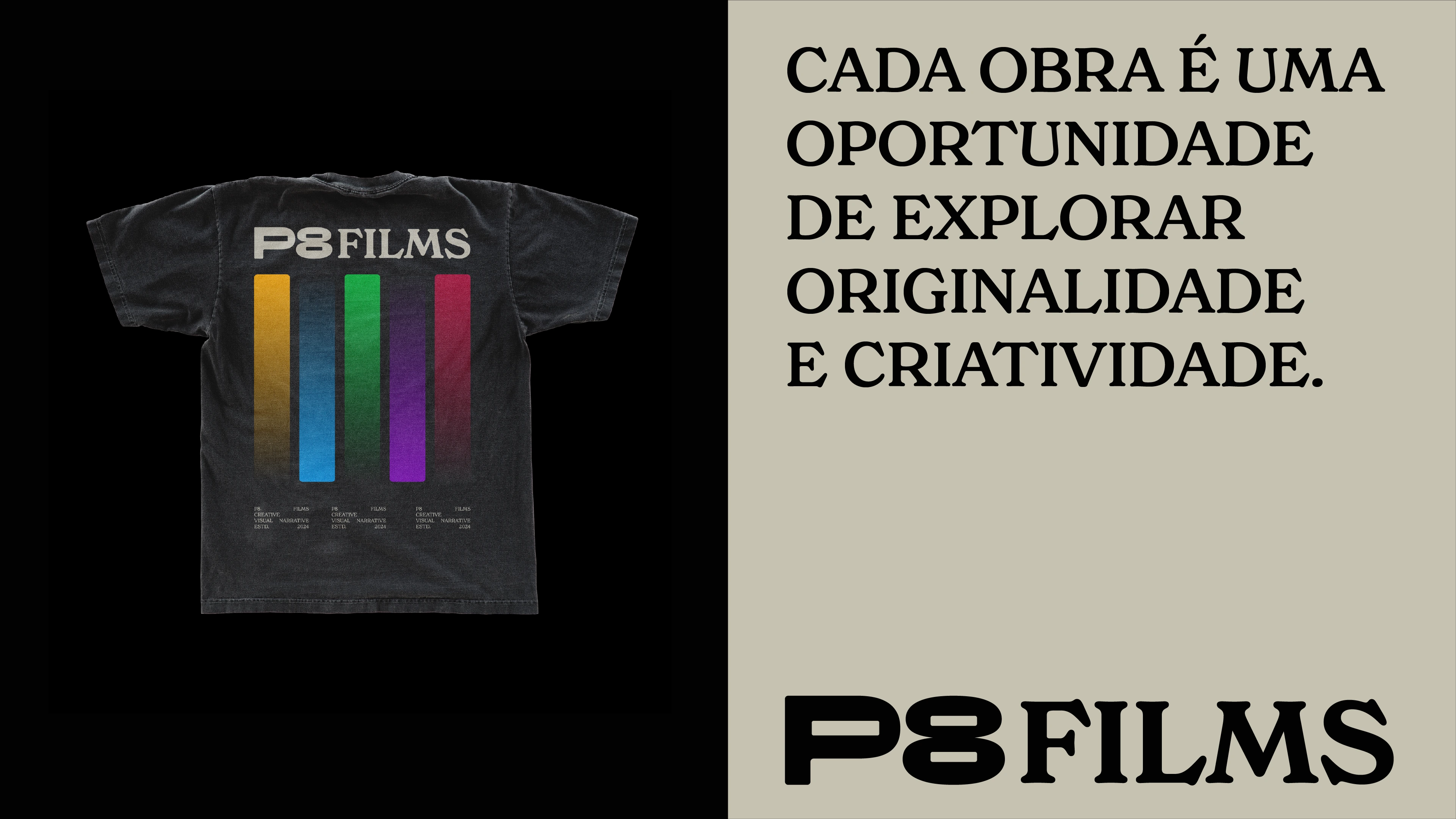 Trabalhamos em cima de um espaço negativo, inspirado na forma das fitas K7, trazendo a sensação de um portal ou tela para todas as possibilidades audiovisuais.
