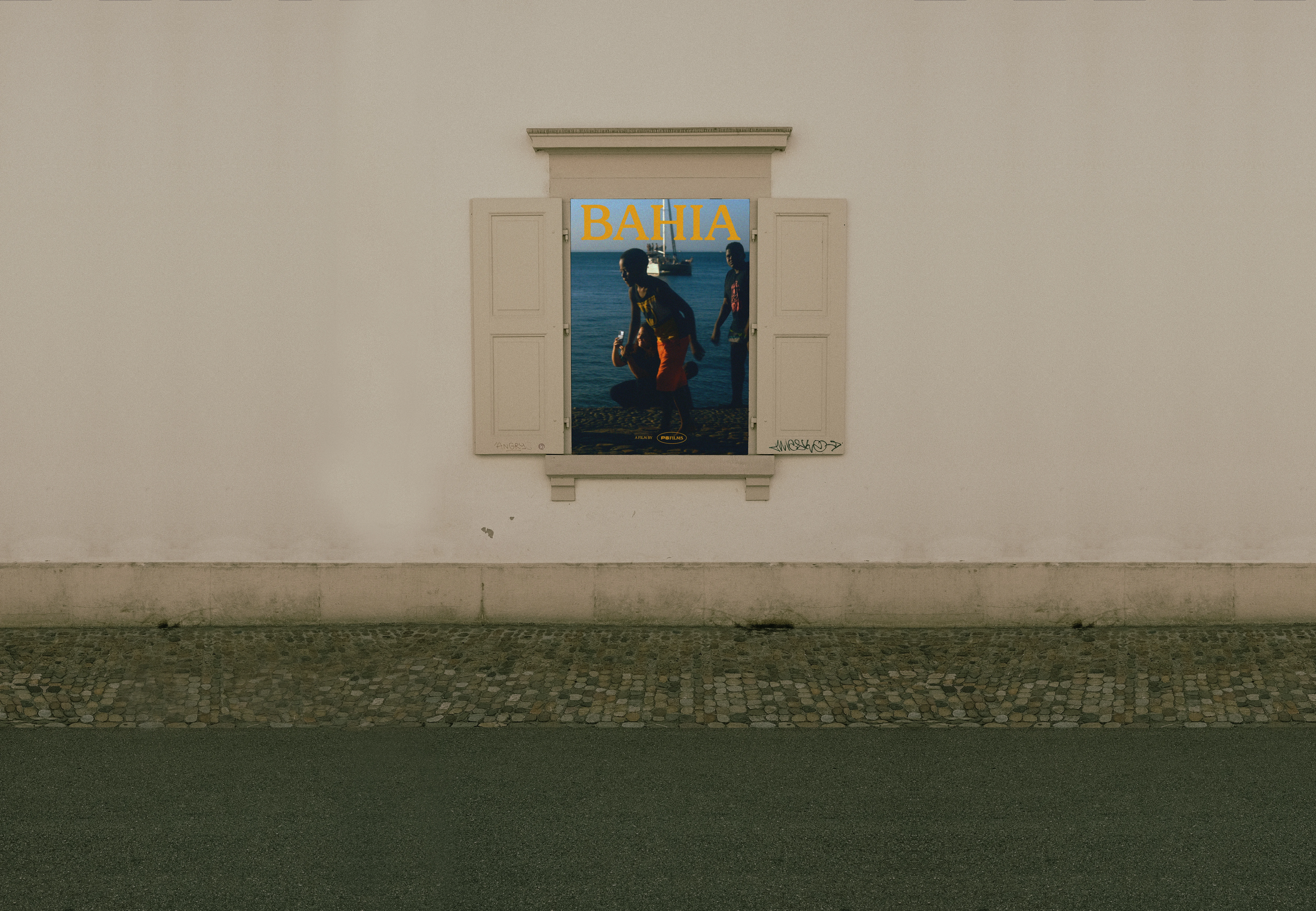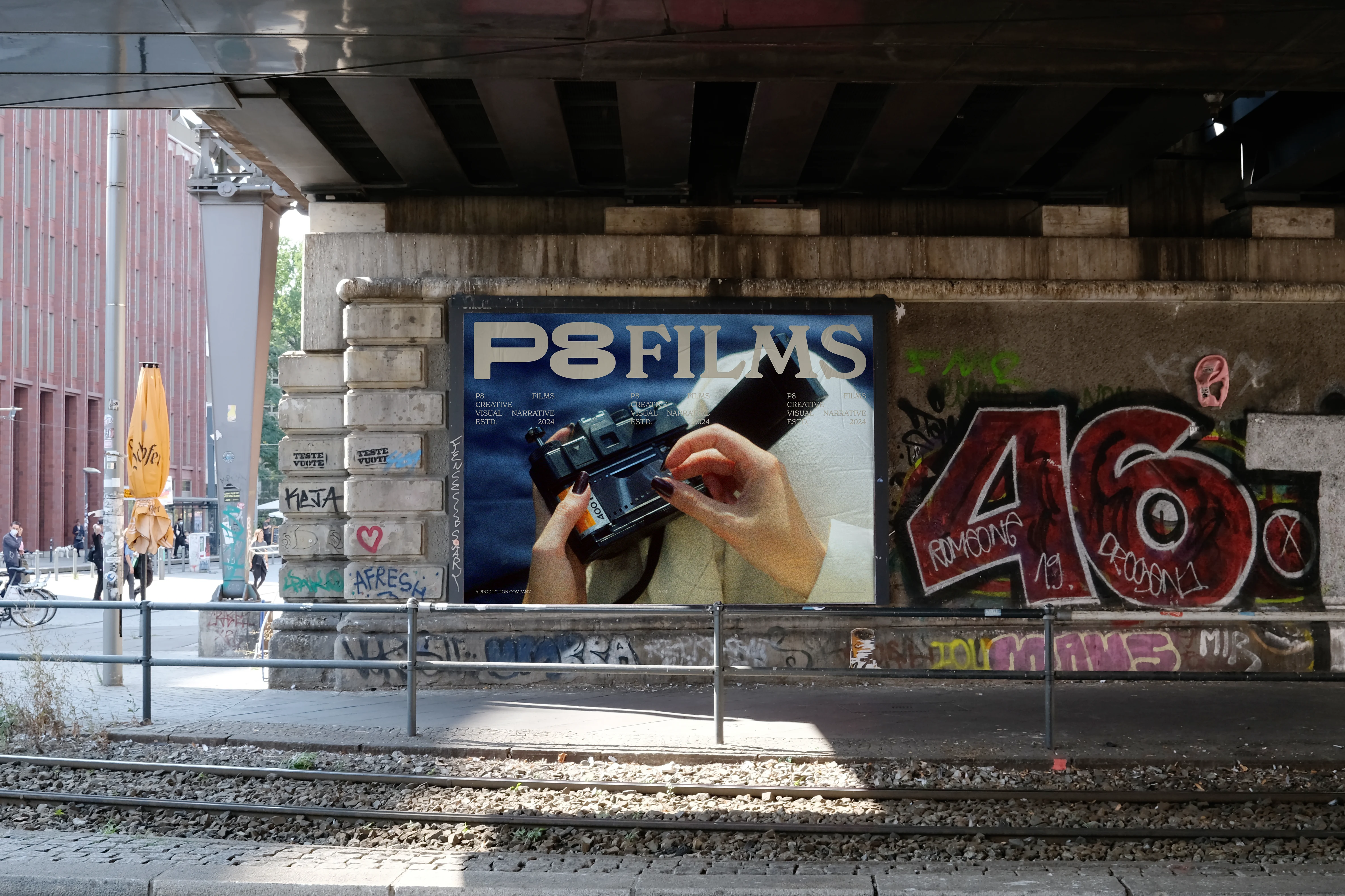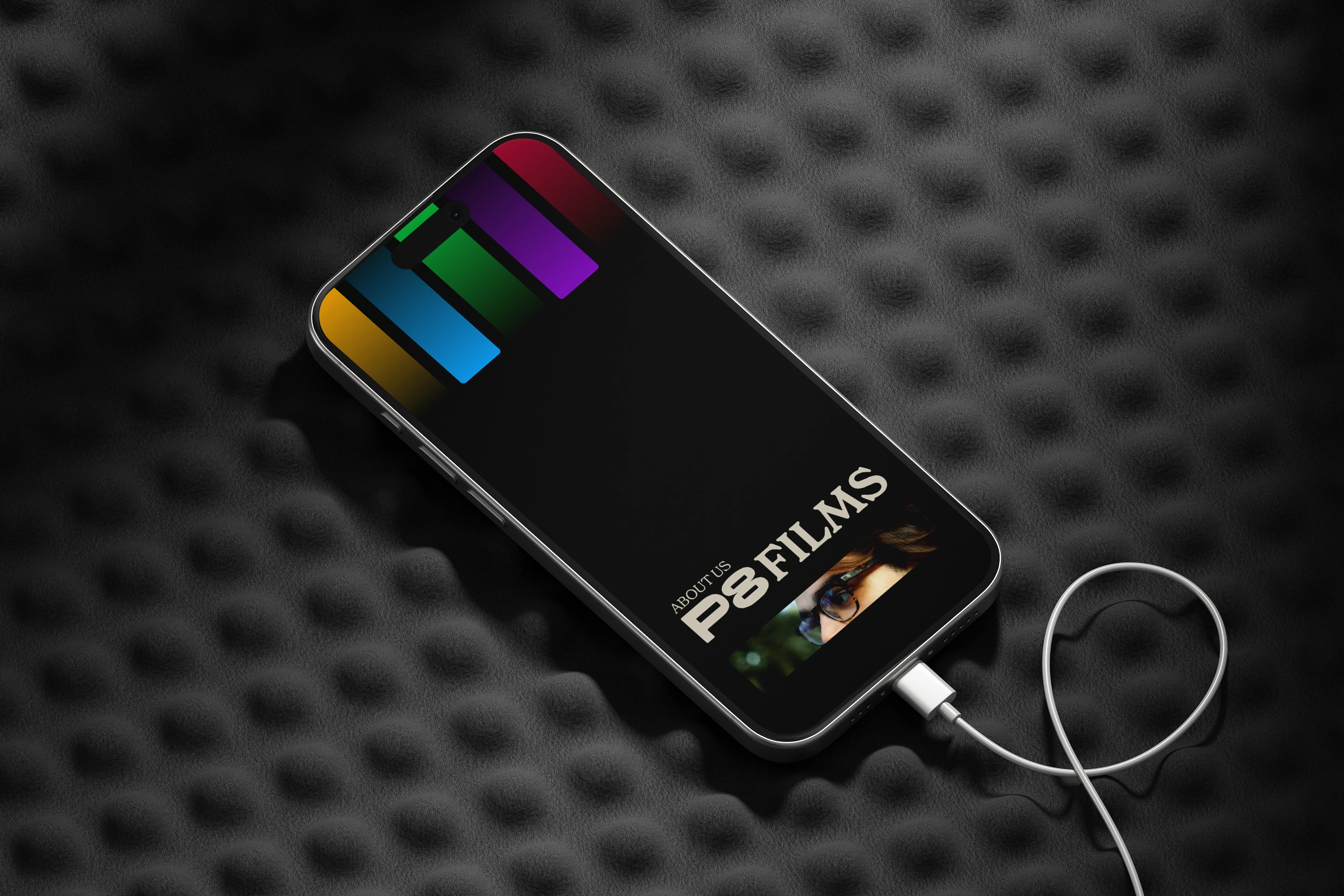 Trabalhamos em cima de um espaço negativo, inspirado na forma das fitas K7, trazendo a sensação de um portal ou tela para todas as possibilidades audiovisuais.