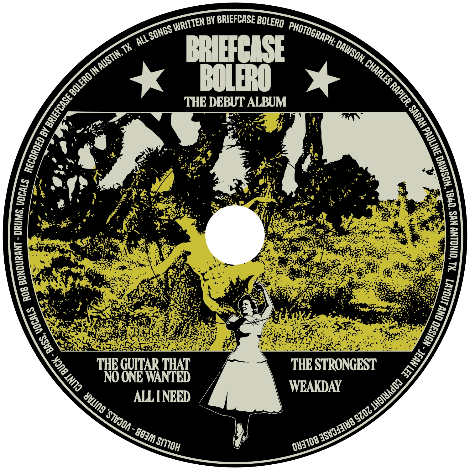 This CD cover packaging was commissioned by Briefcase Bolero, a rock-country band from Texas, for their debut album. The band wanted packaging that felt bold but carefree. I used public domain photos of women dancing in the desert, and utilized a vintage photo provided by one of the band members of his grandmother dancing (featured on the right of the cover art).