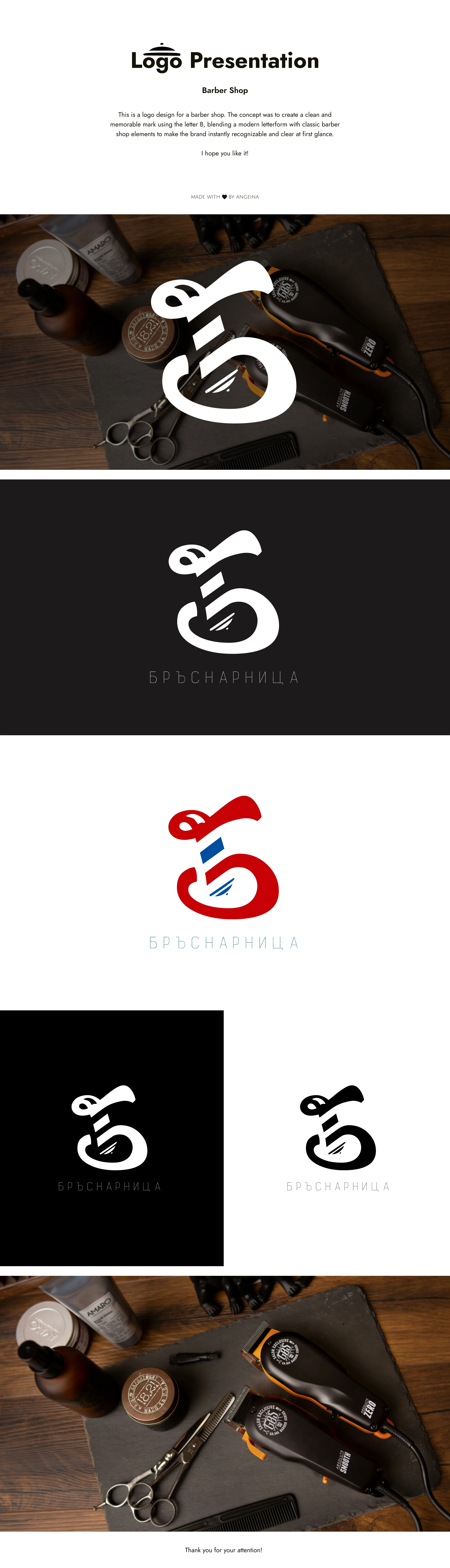 This is a logo design for a barber shop. The concept was to create a clean and memorable mark using the letter B. I hope you like it!
