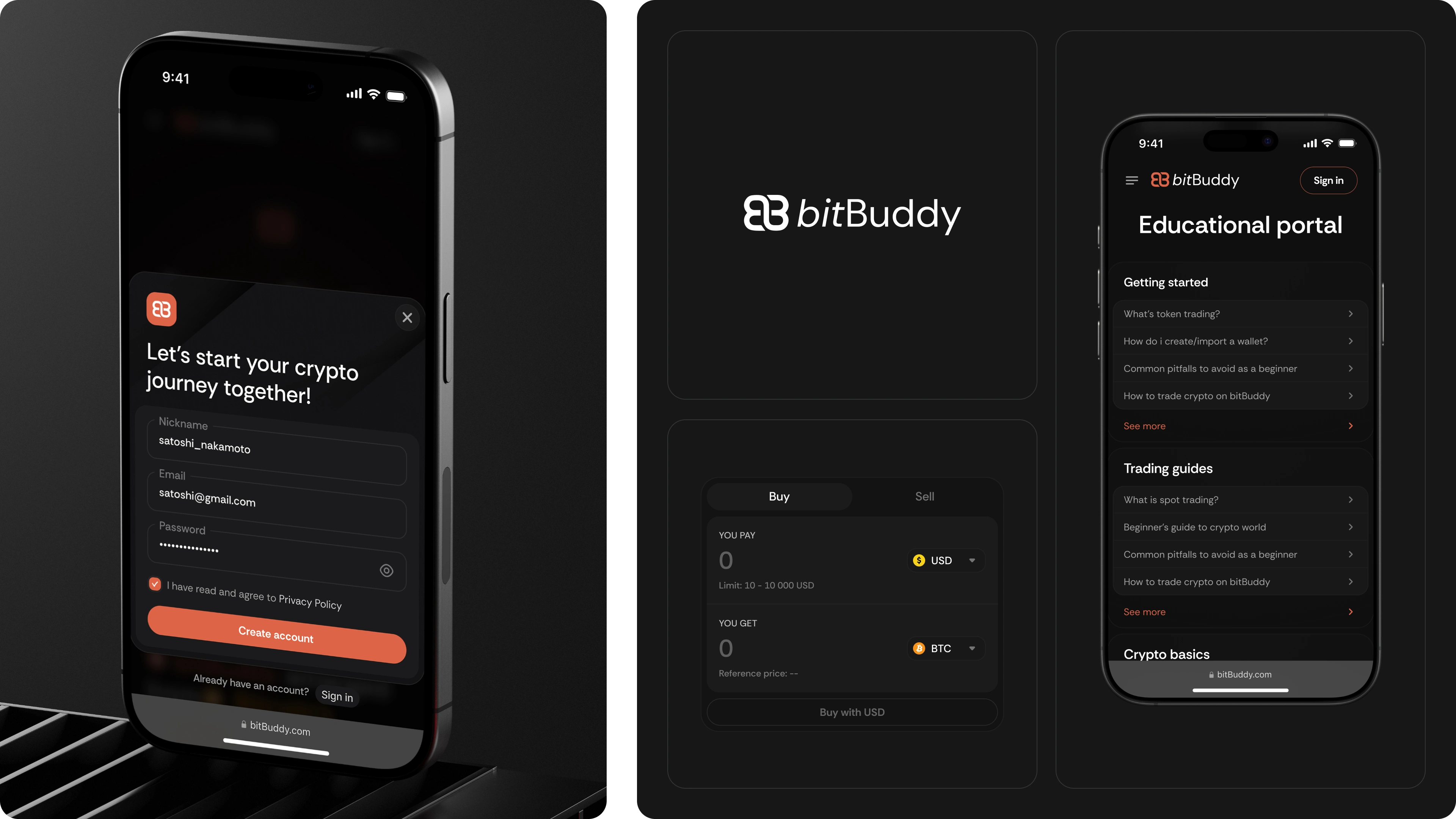 From there, a full design system was created to keep everything consistent across all screens. The final deliverables included a landing page and key product flows covering the main exchange experience: onboarding, trading, and account management. Each flow was designed to feel intuitive for both new and experienced users.