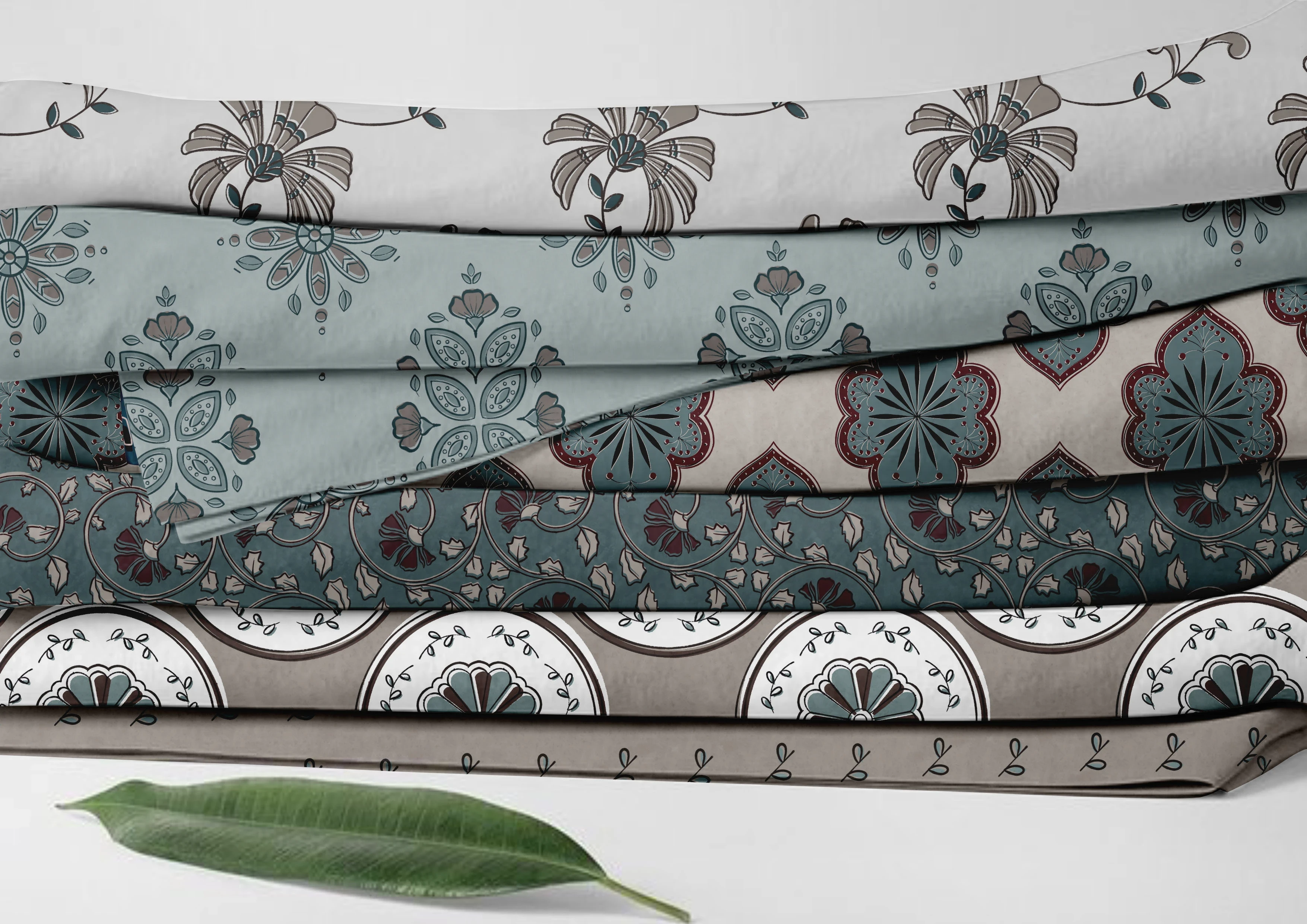 Project Title:Ajrakh-Inspired Seamless Pattern Set | Pastel & Traditional Textile Print CollectionDescription:This project showcases a unique Ajrakh digital pa…