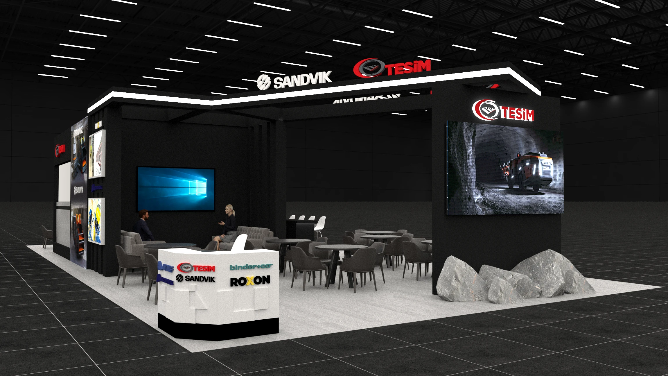 A clean, powerful and industry-centered exhibition booth designed for Sandvik at MINEX 2025.The concept focuses on strong brand identity, functional product di…