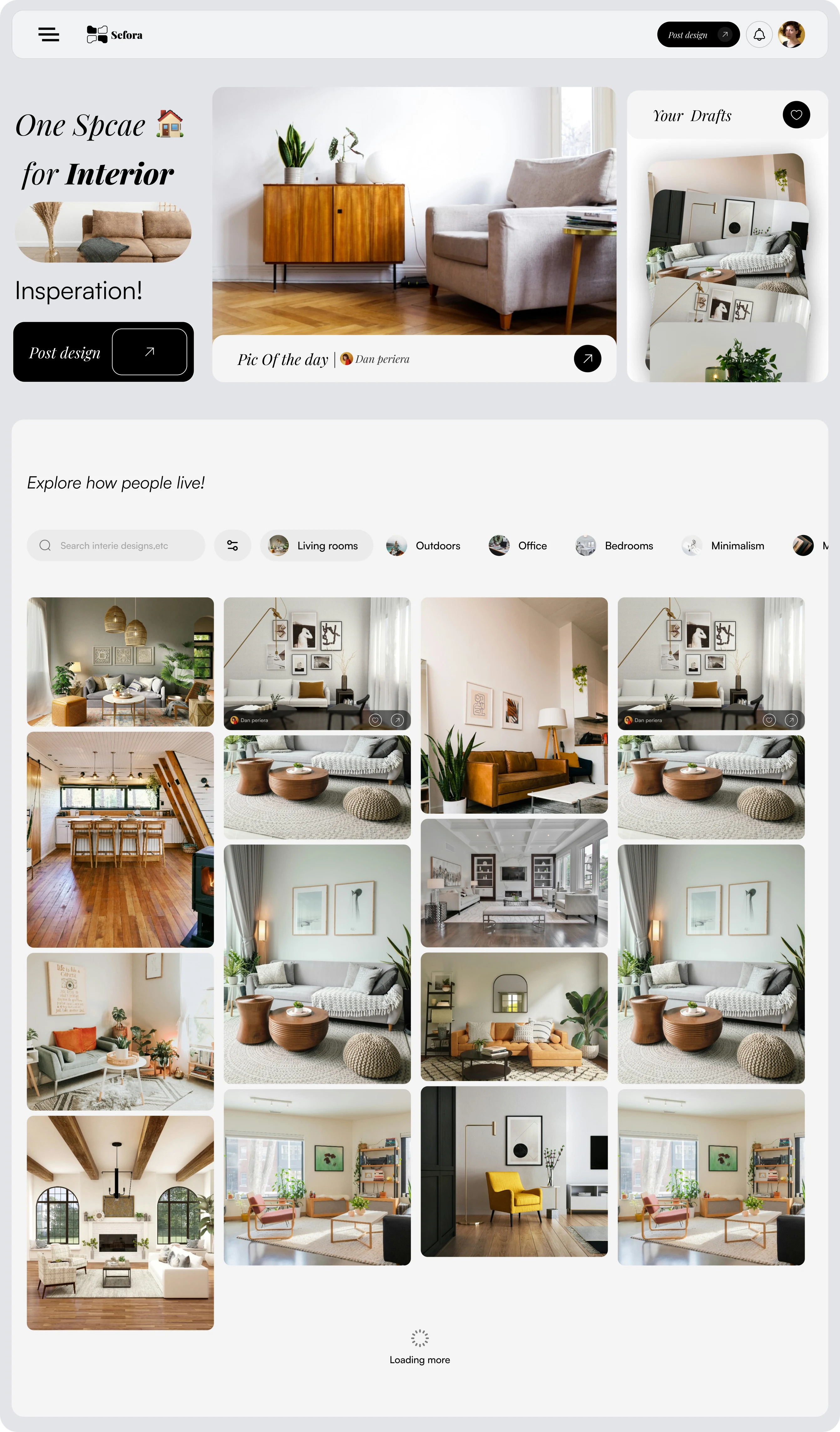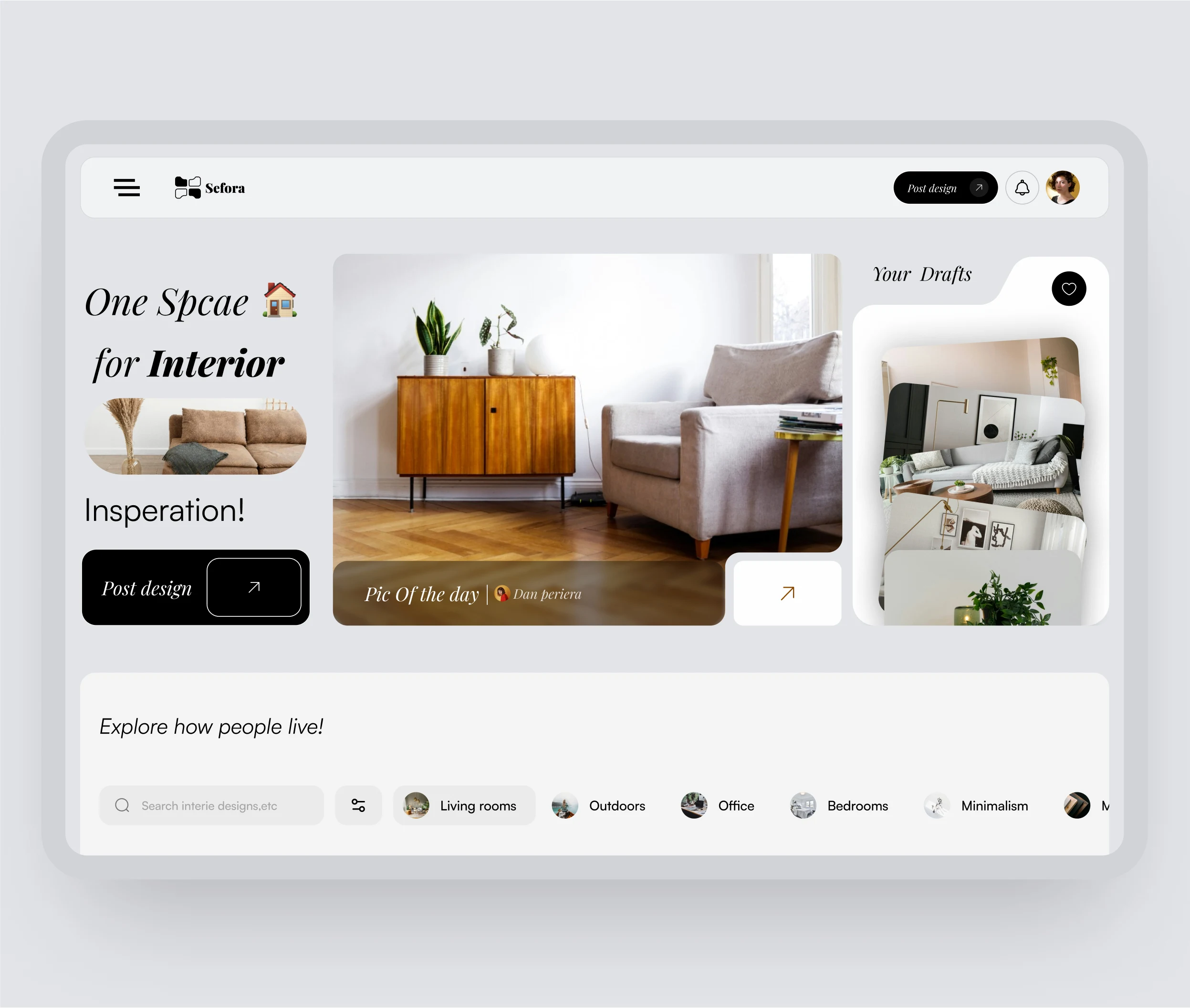 the ultimate platform for interior design inspiration. Our goal is to provide a simple, user-friendly space where design enthusiasts, homeowners, and professionals can find and share beautiful interior designs. Sefora is designed to make discovering, saving, and sharing interior design ideas effortless.
