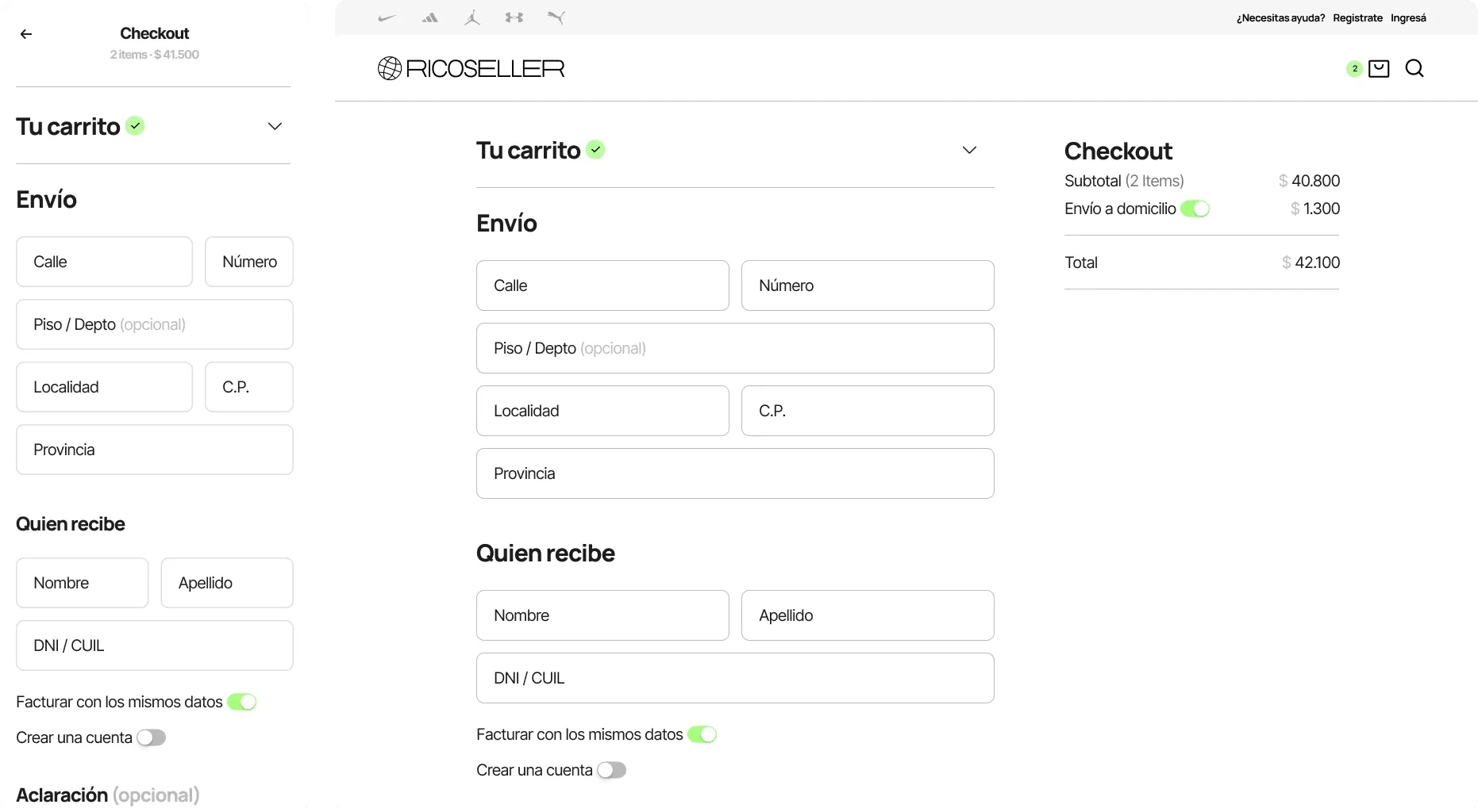 Developed Ricoseller's brand identity and e-commerce platform in Argentina.