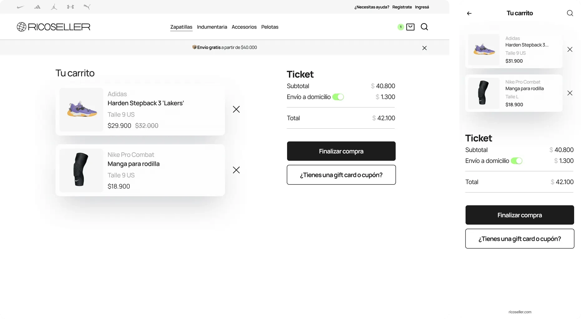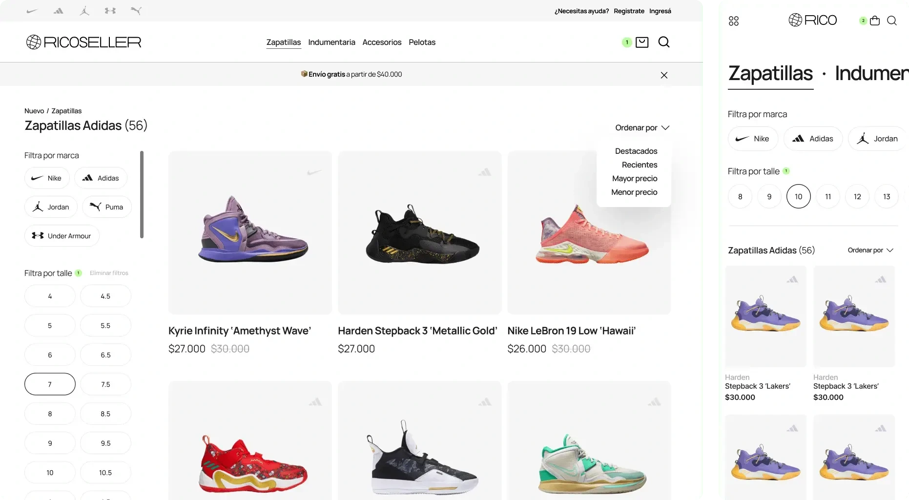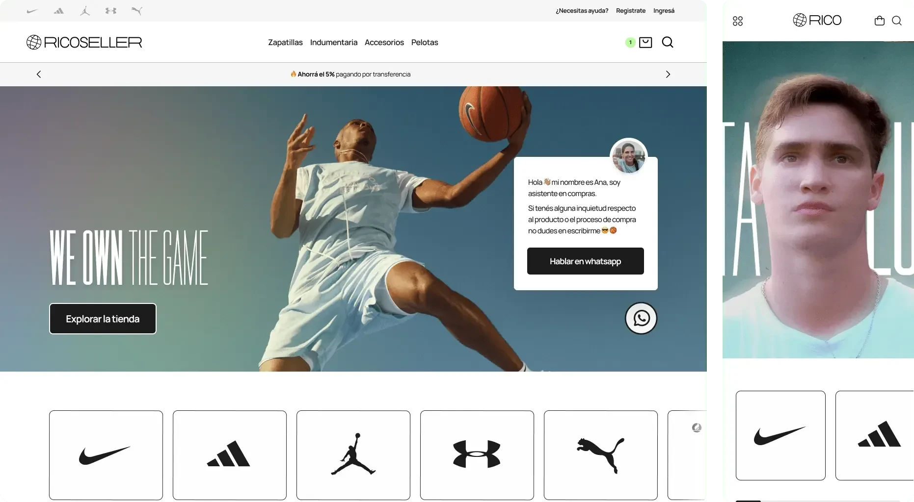 Ricoseller is a rising brand in Argentina focused on basketball footwear and apparel. This project involved building its visual identity and designing a complete e-commerce experience from the ground up.