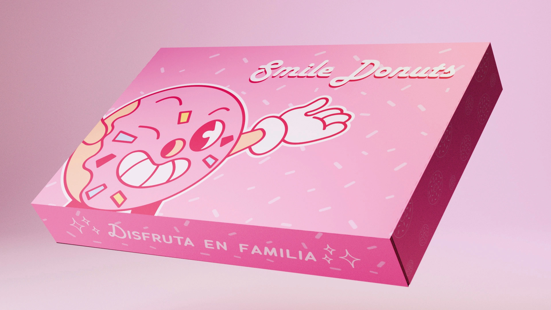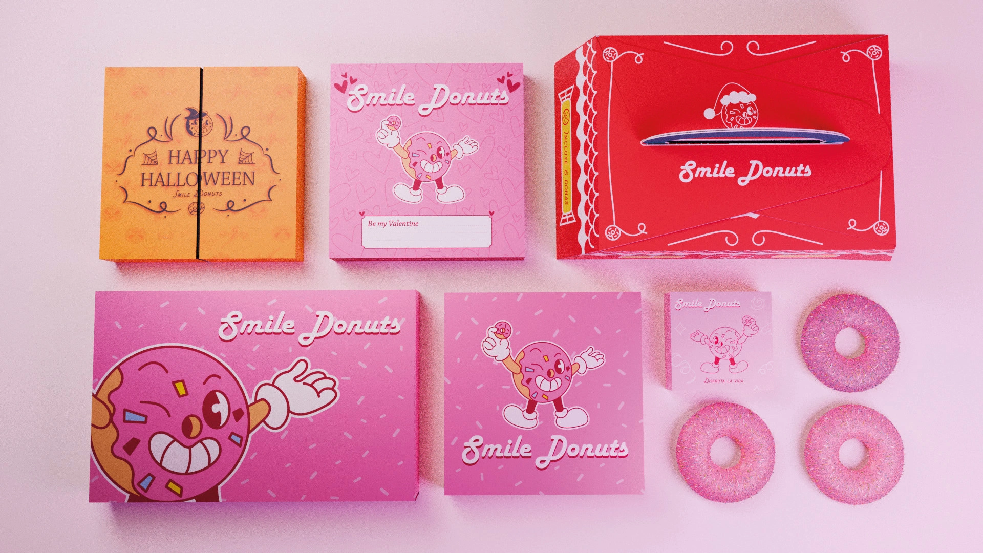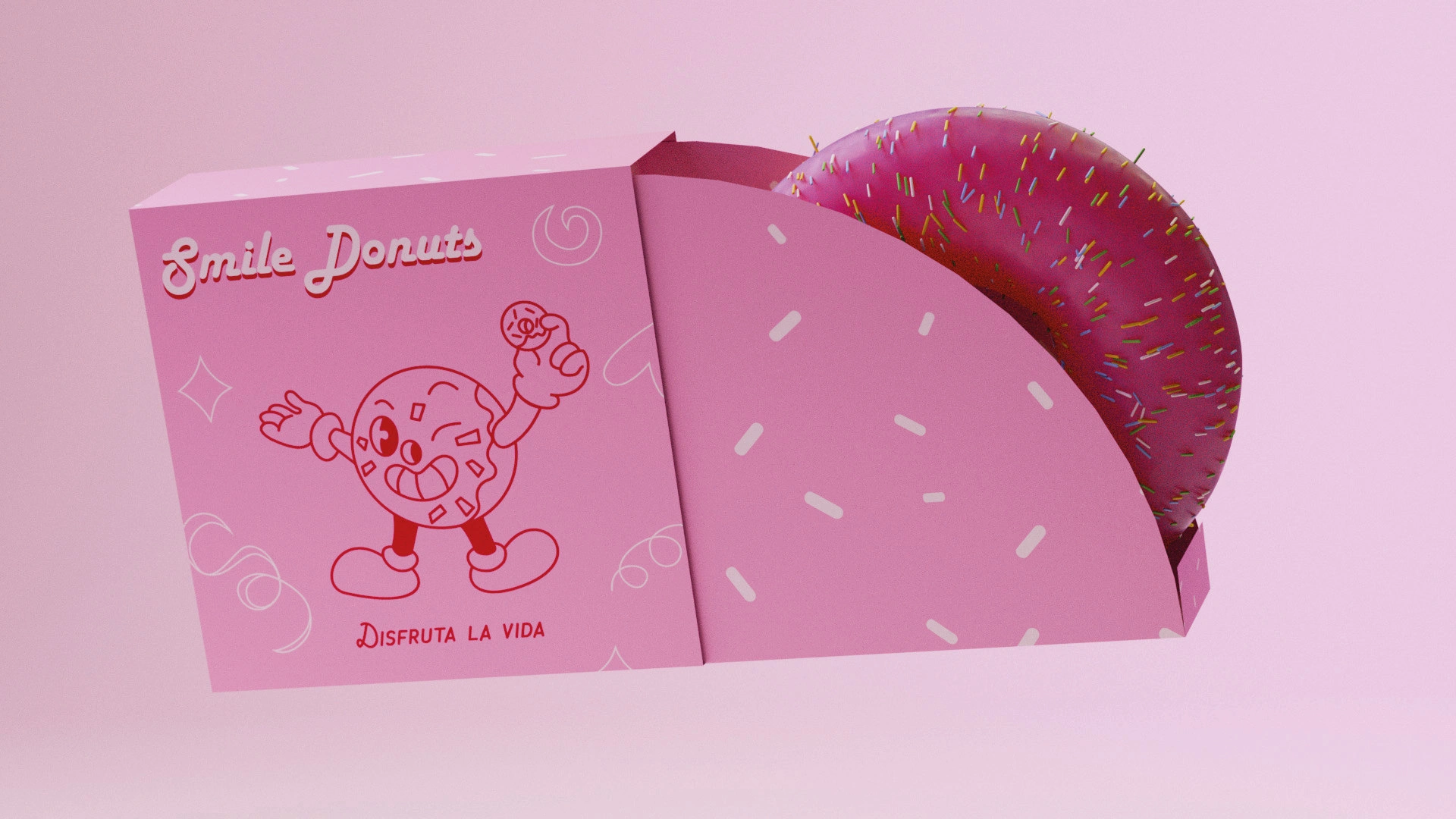 Branding and packaging for "Smile Donuts" My role. 3d Mockups (blender), the graphic design of the packaging, and part of the branding of Smile Donuts.