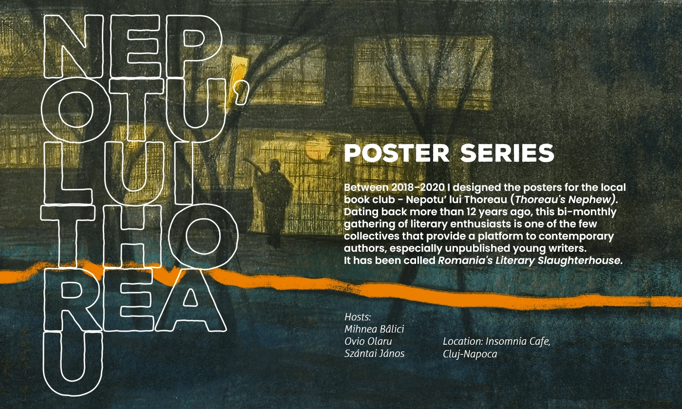 Nepotu' lui Thoreau is a literary circle with bimonthly meetings in Cluj, Romania. I designed the posters and Social Media creatives between 2018-2020.