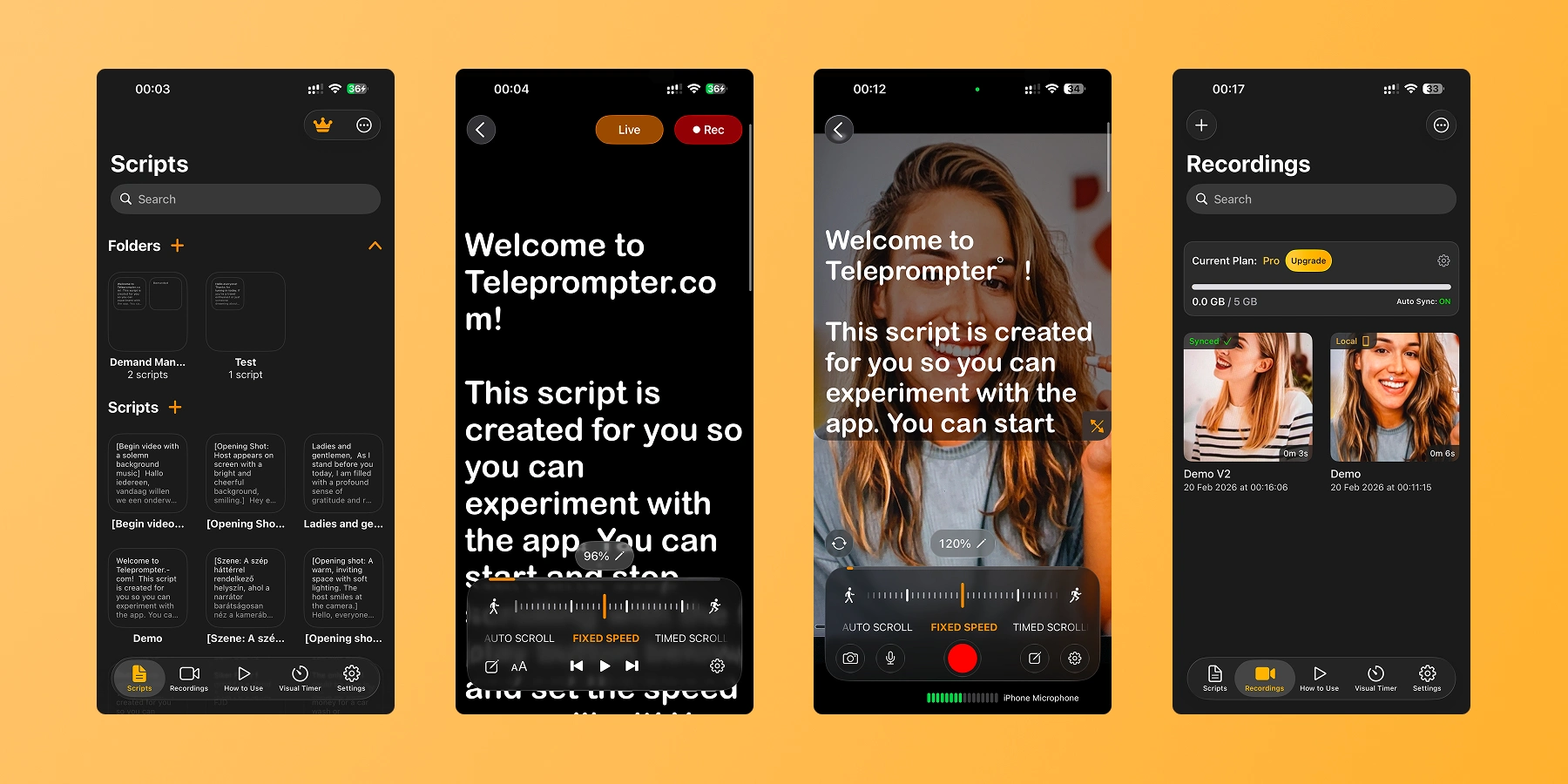 Teleprompter.com is one of the App Store's fastest-growing teleprompter apps, with over 5 million downloads across iOS, Android, and web. Its users range from solo content creators filming YouTube and TikTok videos to professionals delivering speeches, recording podcasts, and hosting video interviews. The app's core promise is making anyone look confident and prepared on camera, which made the friction in the existing recording experience all the more critical to fix.