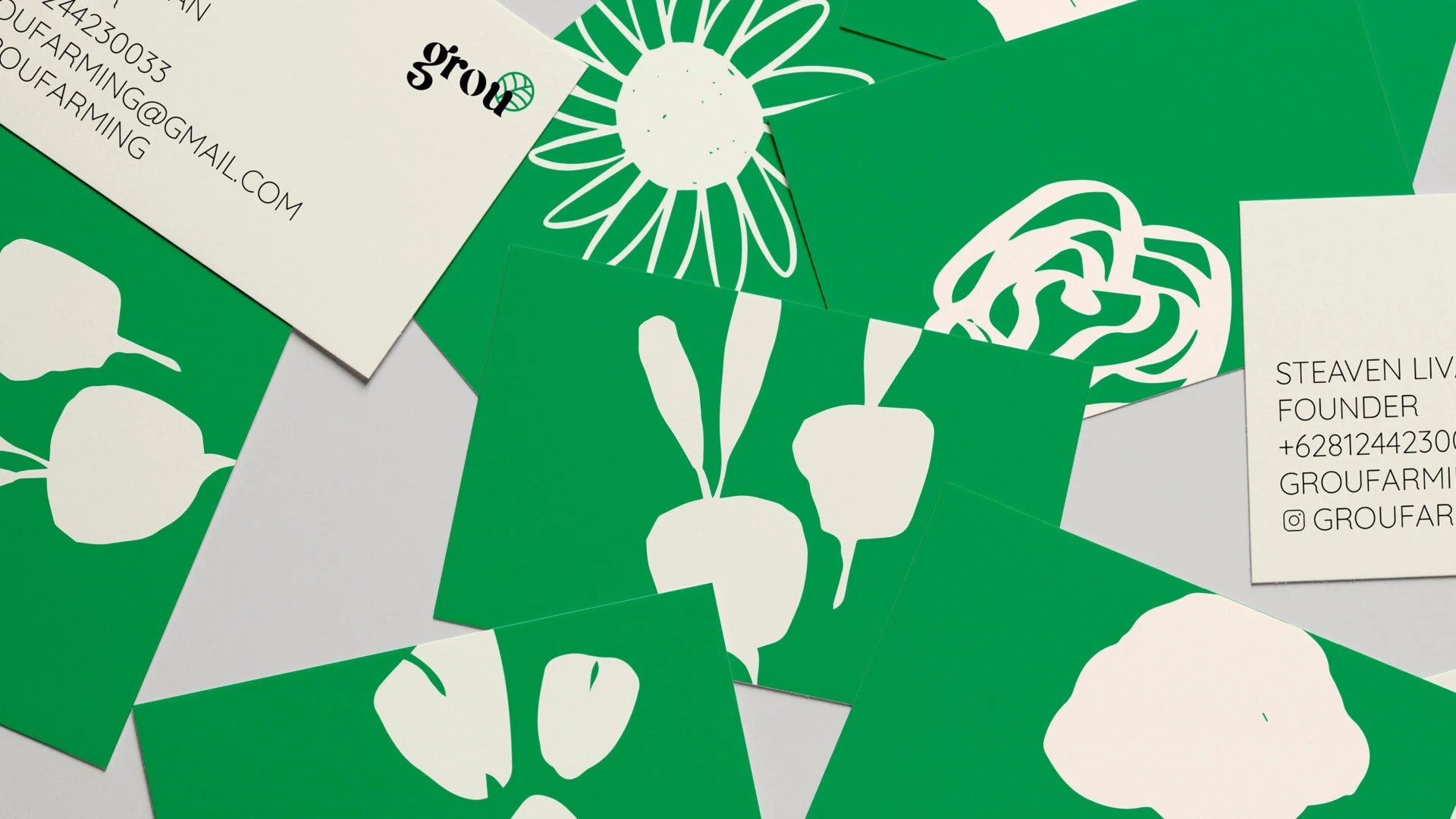 GROU is working on reimagining how we produce food in a more efficient way with less resource & space. The products should always be fresh, burst with flavour, all less but more. The first product of Grou is microgreens, therefore we use a leaf bone to represent the “micro” look of the “greens”, encapsulated in a perfect round shape to represent Grou’s vision of sustainable living and a better world. We created several silhouette illustration to describe and distinguish the types of microgreens.