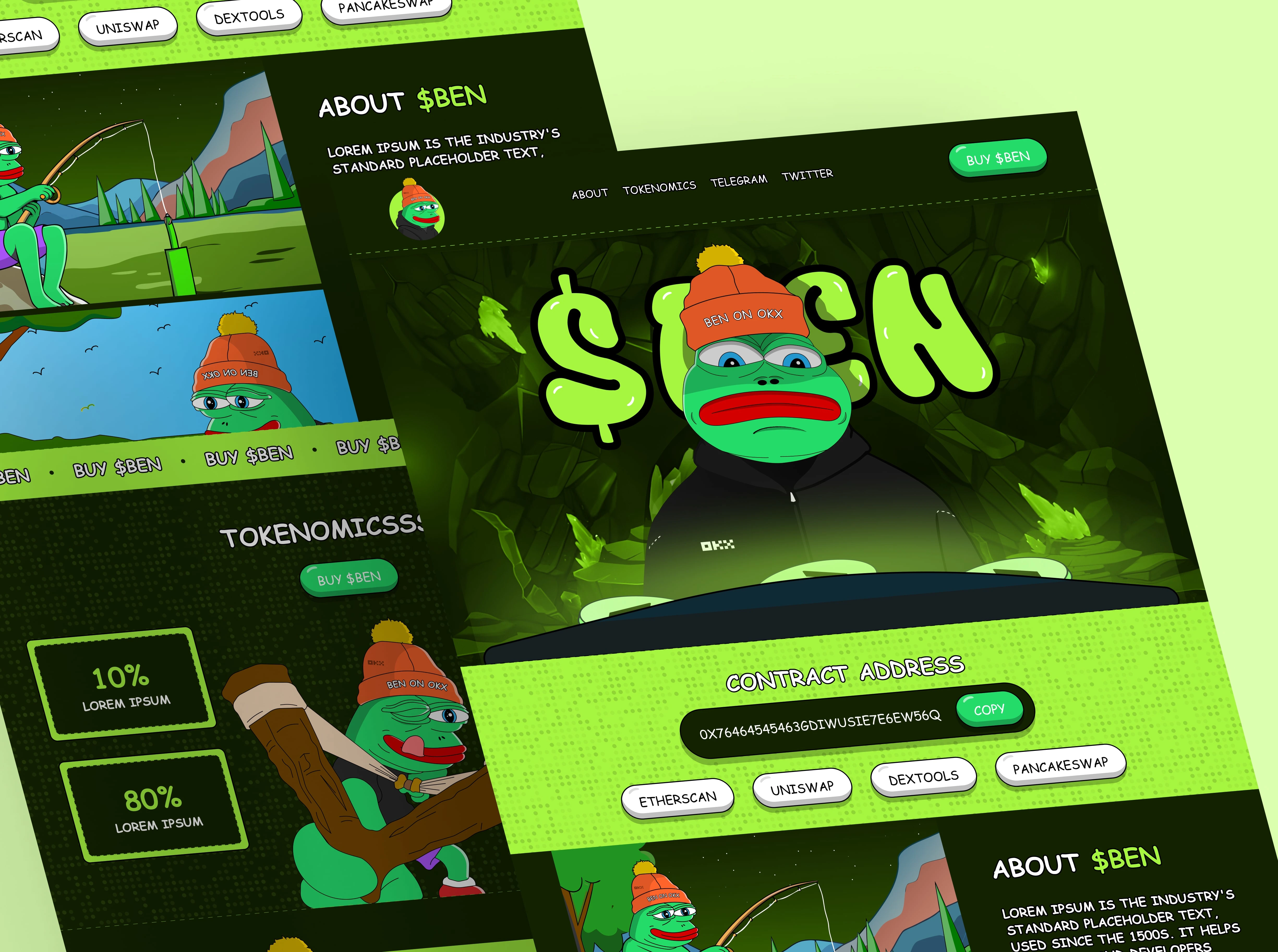 I design the mascot, web design interface and handled the no-code development of this memecoin project.