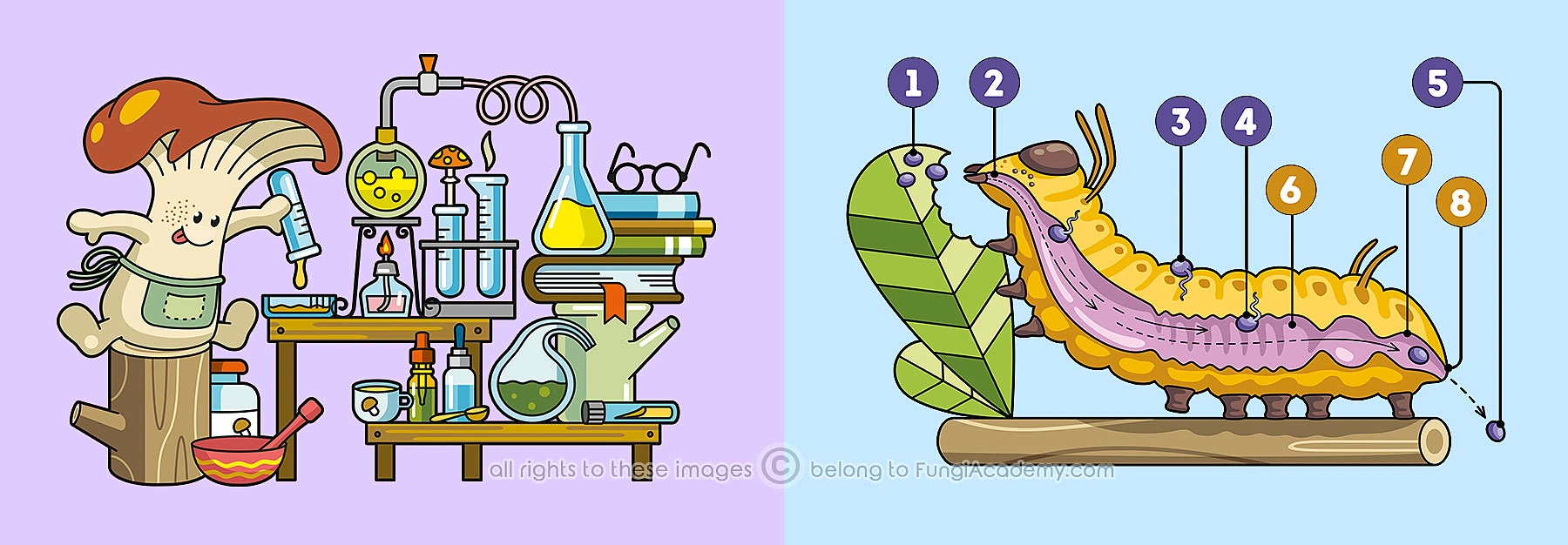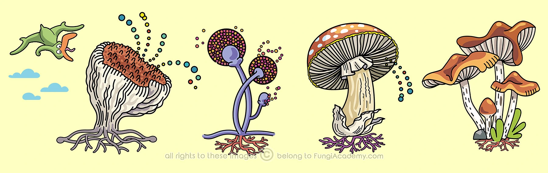 Fungi Academy commissioned Julia Aliper to create art assets for their FUNGAL ECOLOGY course to be used in educational materials and animated video lessons.