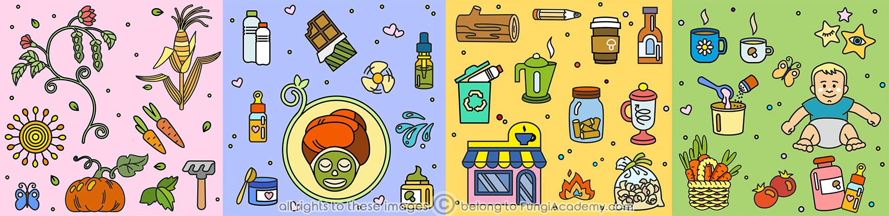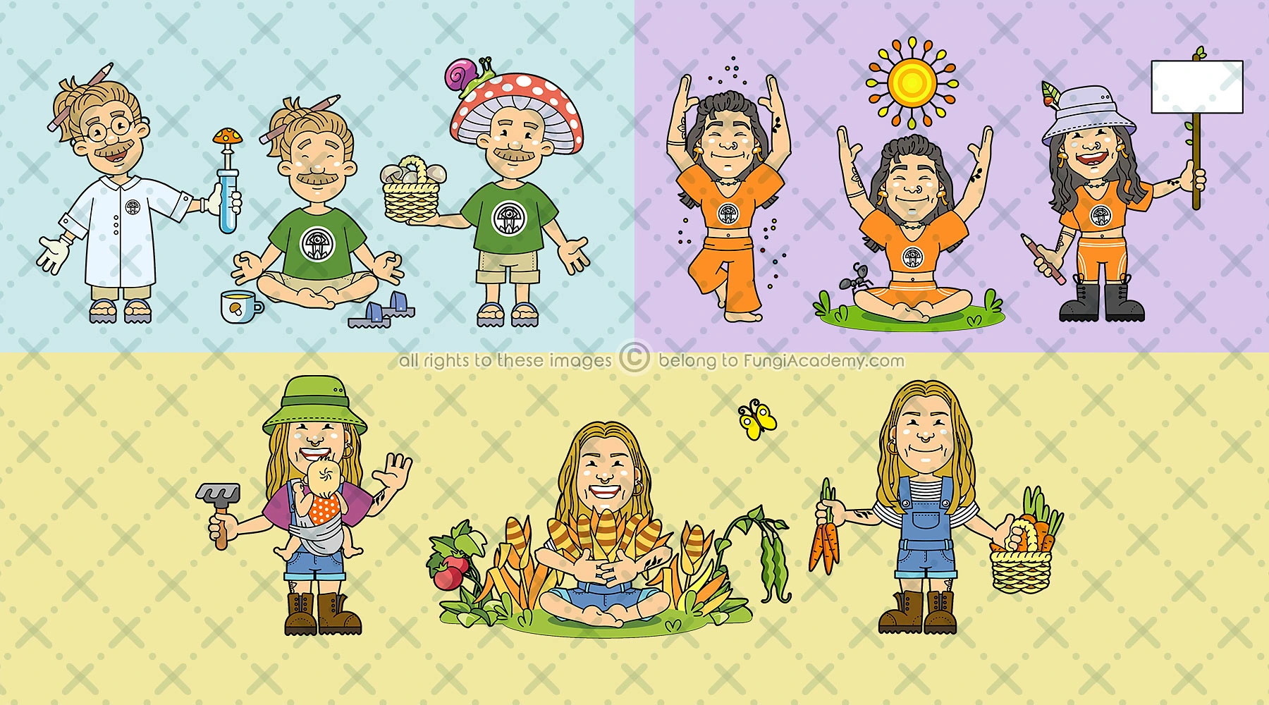 Fungi Academy, an international collective inspiring deepening human's connection with nature, connecting a global community of mushroom cultivators, permaculturists, and eco-changemakers, commissioned Julia Aliper to create art assets for their FUNGAL ECOLOGY course to be used in educational materials and animated video lessons.