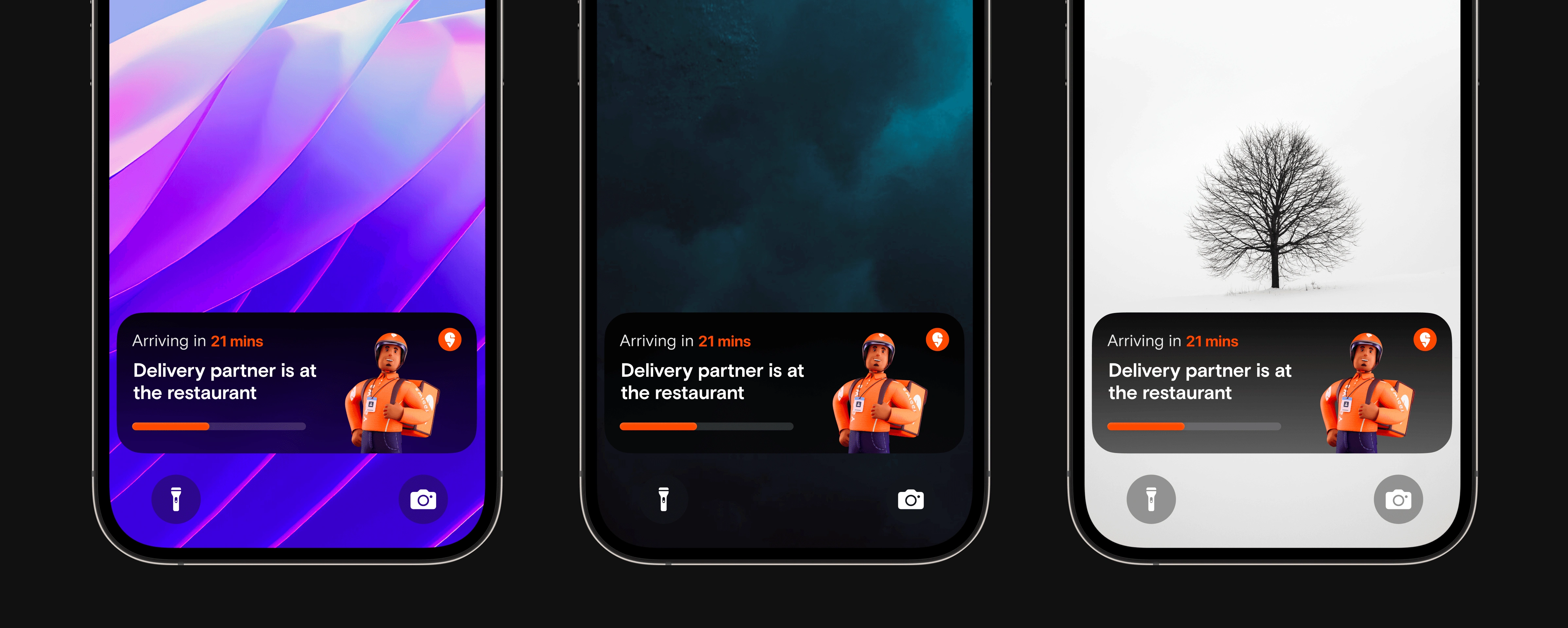 The Live Activity widget was going to appear on the lock screen which the users can customise in any way possible. We made sure that it worked on backgrounds with different colors, luminosity, detailing, etc.