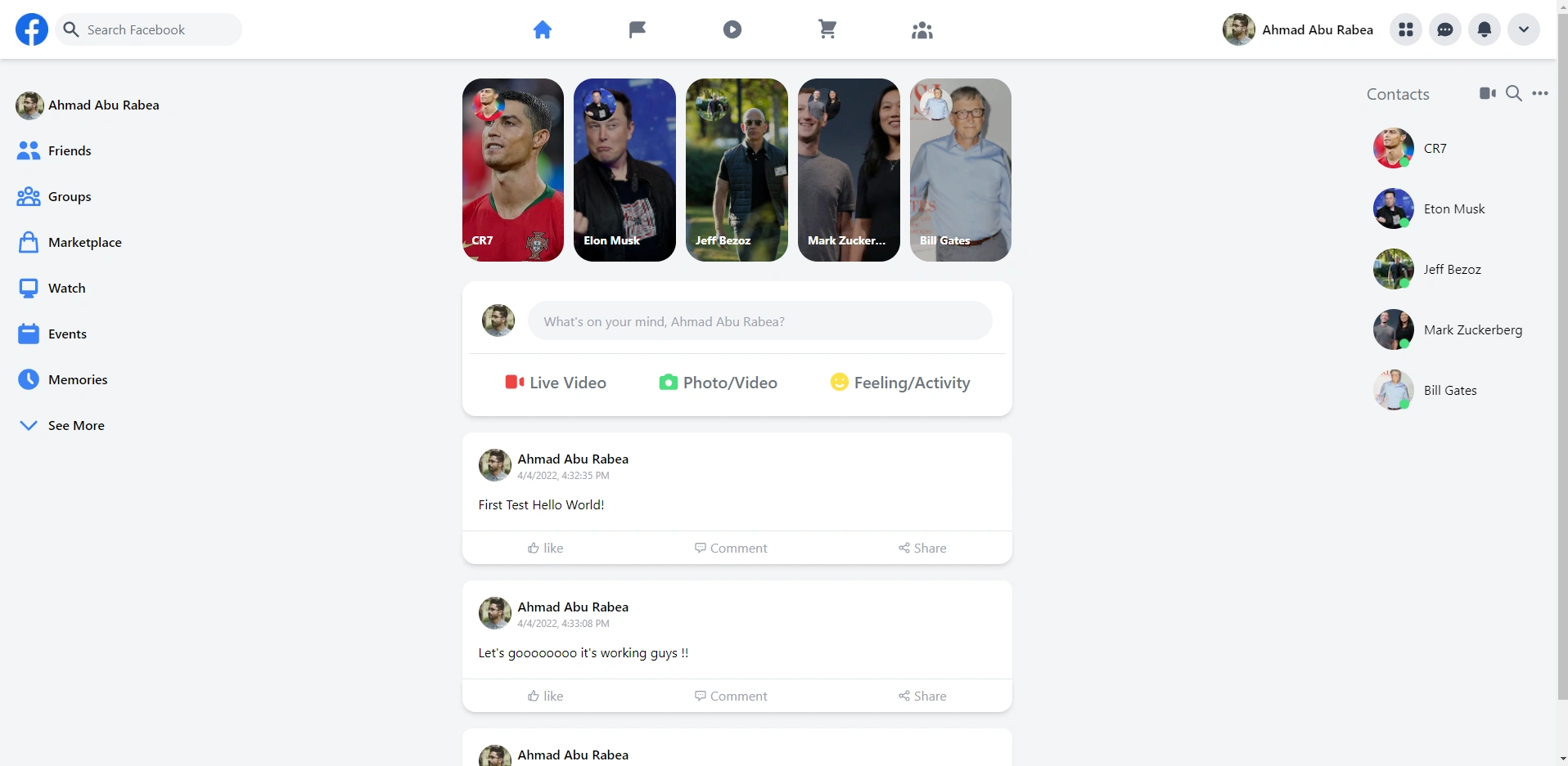 Developed a Facebook clone with React.js and Firebase.