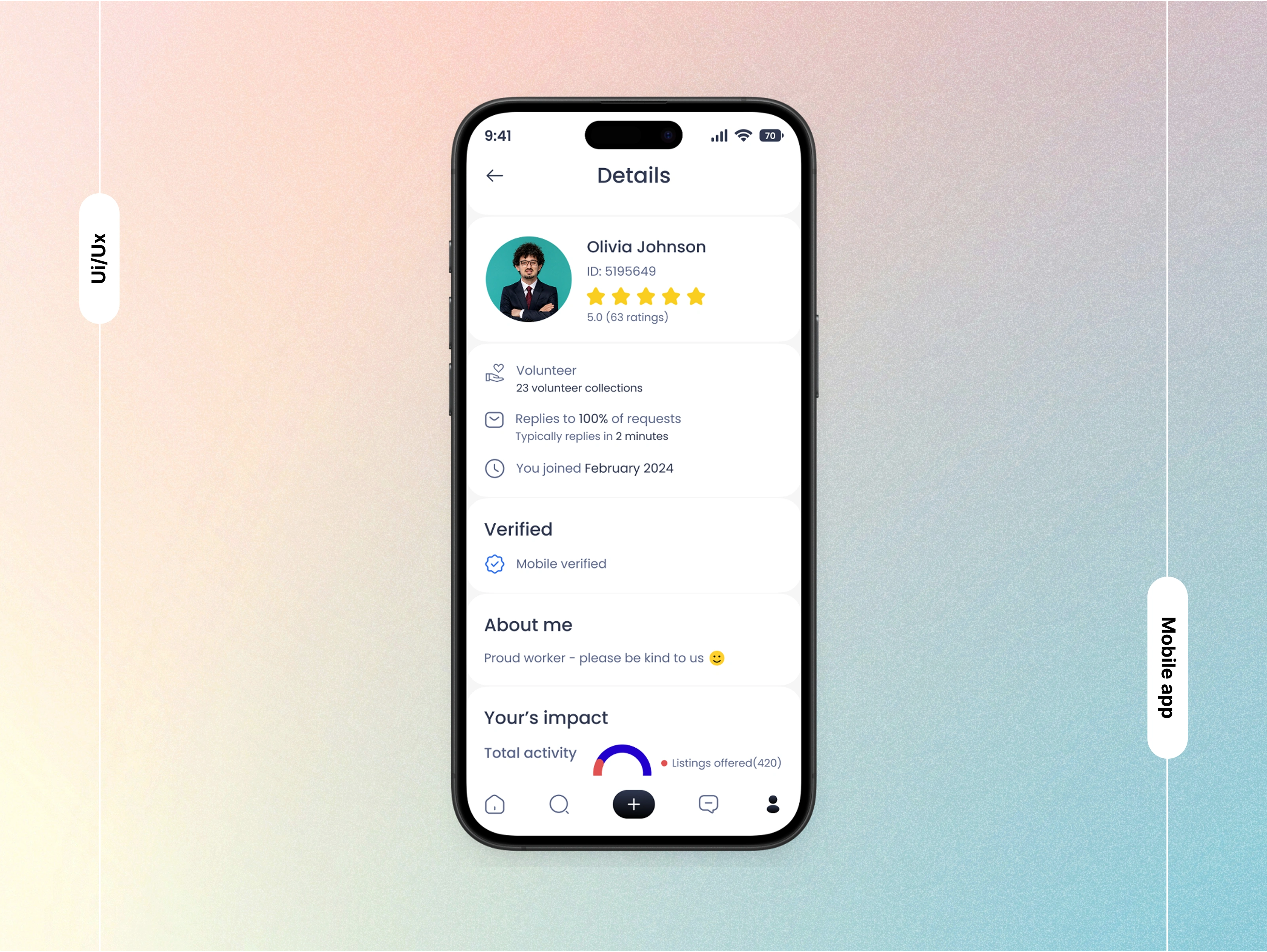 Profile Details Page – Local Community Help App UI. This screen highlights how a community member’s contributions are showcased in a trusted, transparent way.Users can view stats, read feedback, explore help history, and connect with trustworthy neighbors.Designed to build confidence through helpfulness, empathy, and a touch of gamification.🧩 Figma · Smartmockups · Community UI.