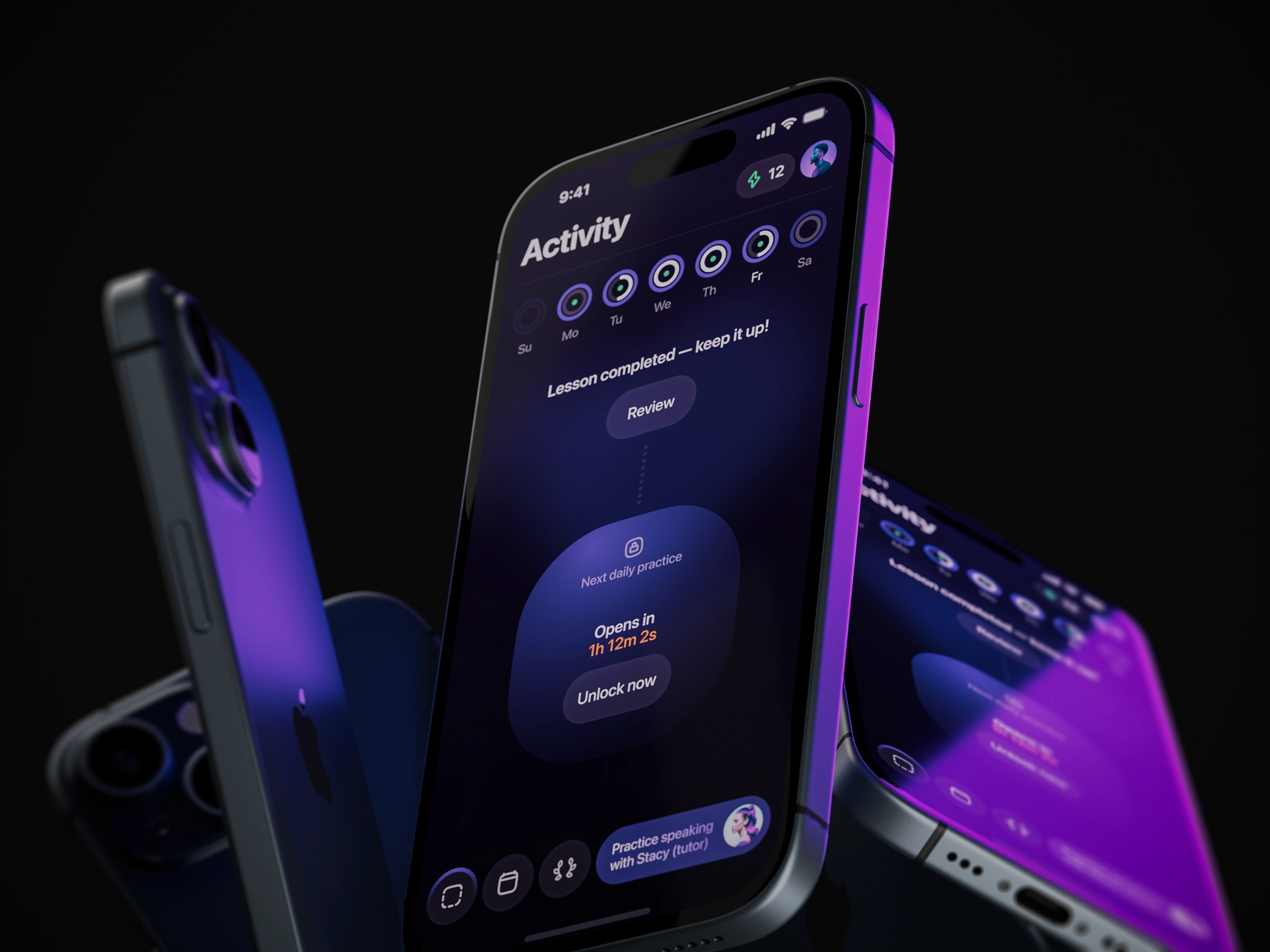 As a paid home assignments, designed the major flow of seeing today's tasks and exploring progress within "Fluently score" flow.