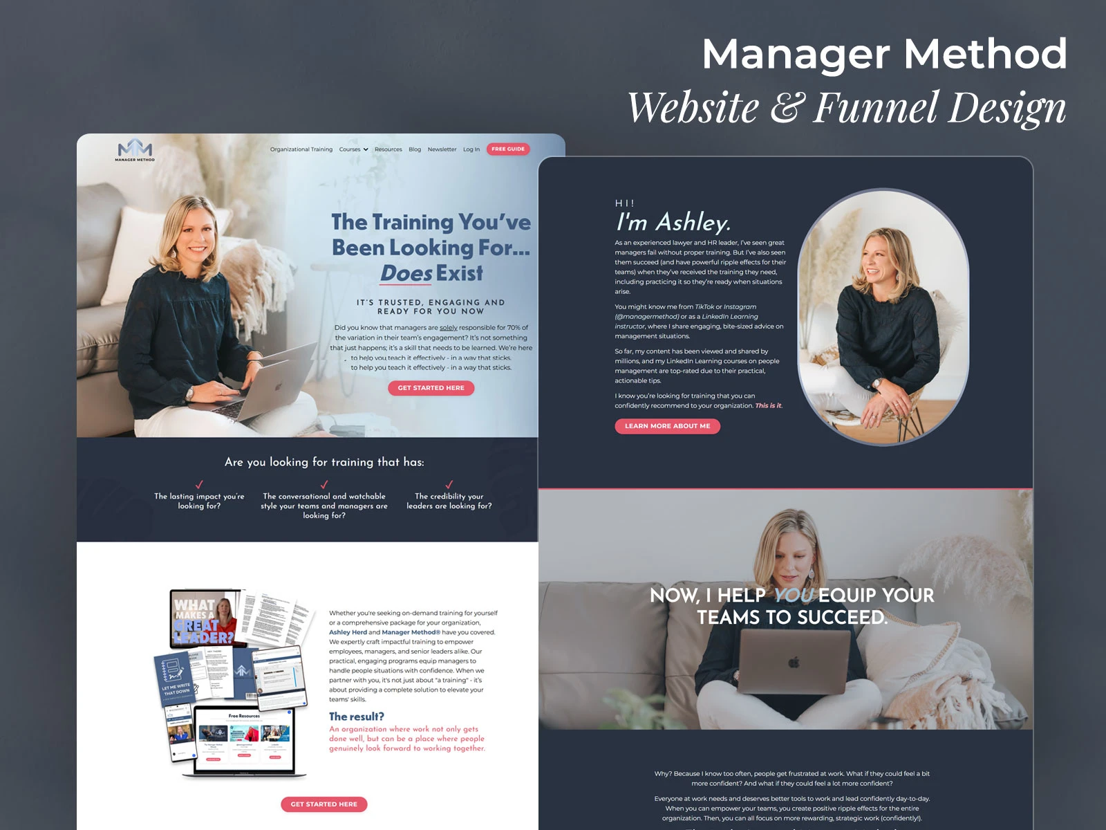 The layout of the Manager Method website is structured for simplicity and ease of navigation. It employs a minimalist approach, with a lot of white space, simple typography, and a modern feel, making it user-friendly and straightforward.