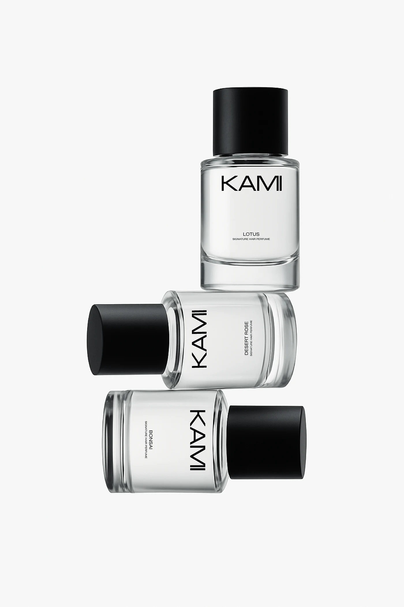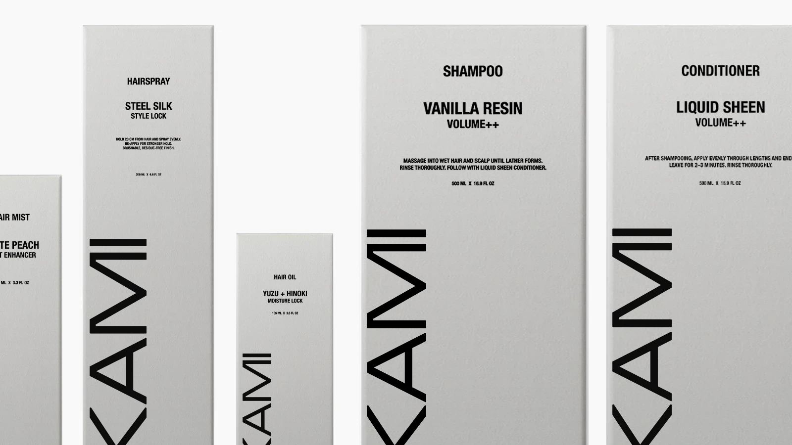 KAMI is a modern hair care brand built on the principle of uncomplicated rituals. Their concept includes high-quality, design-led products that combine precision, purity, and strength with a focus on essentials — shampoos & conditioners, treatments, styling products, and fragrance for hair — designed to simplify routines without sacrificing performance.