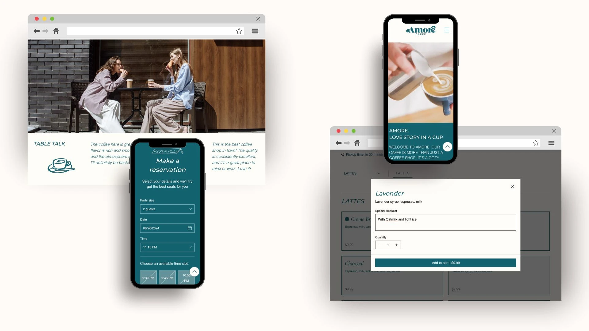 Website and UX/UI design for Amore Caffe, a local coffee shop in San Diego. *Logo and illustrations not designed by me