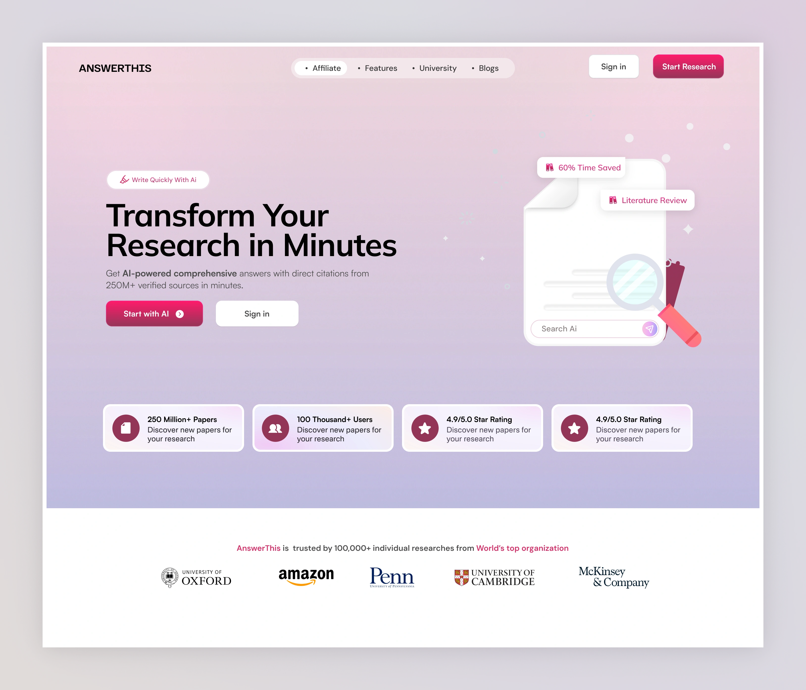 AnswerThis is an AI-powered research assistant that helps generate structured, citation-backed literature reviews from over 200 million scholarly sources.
