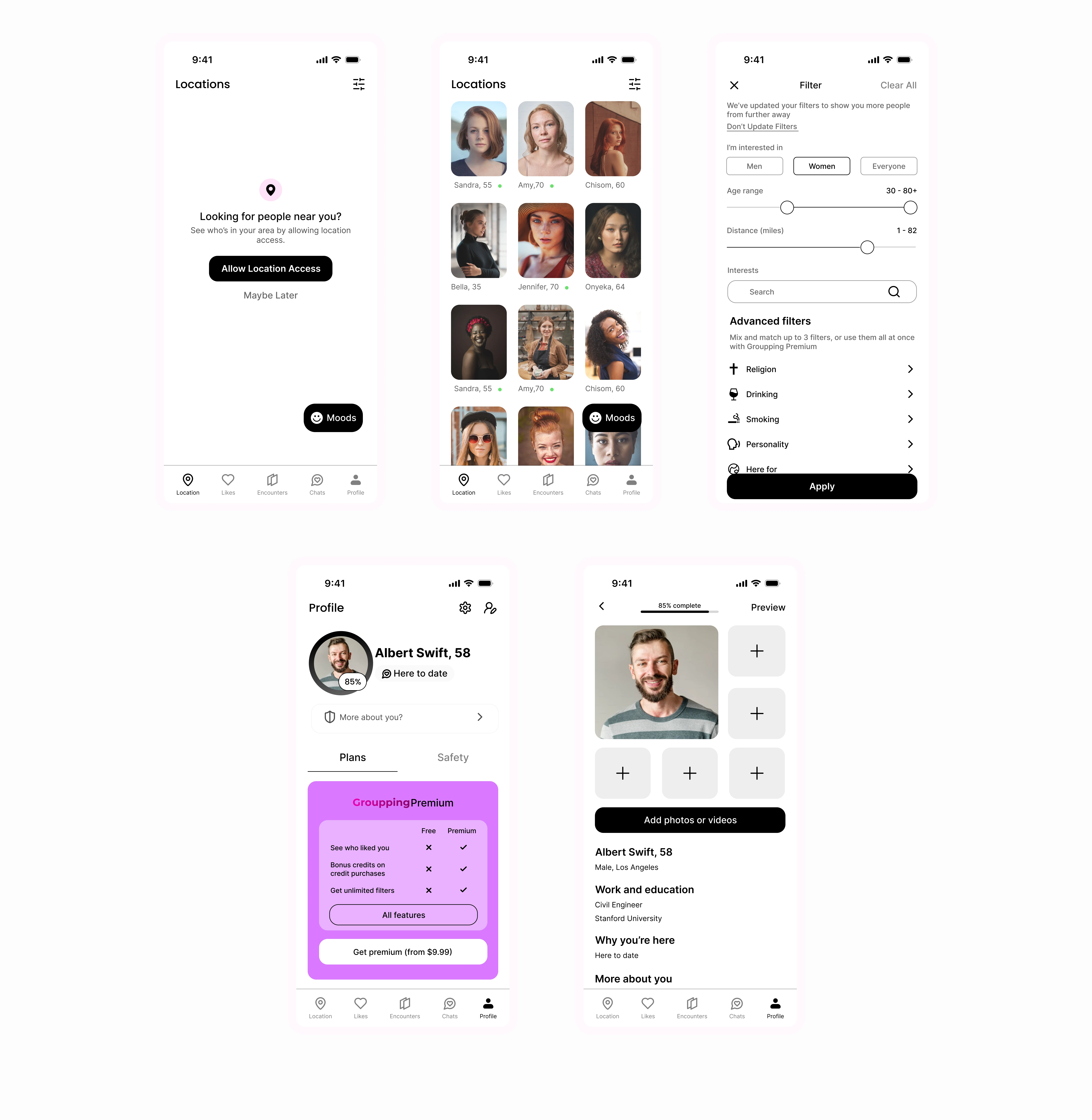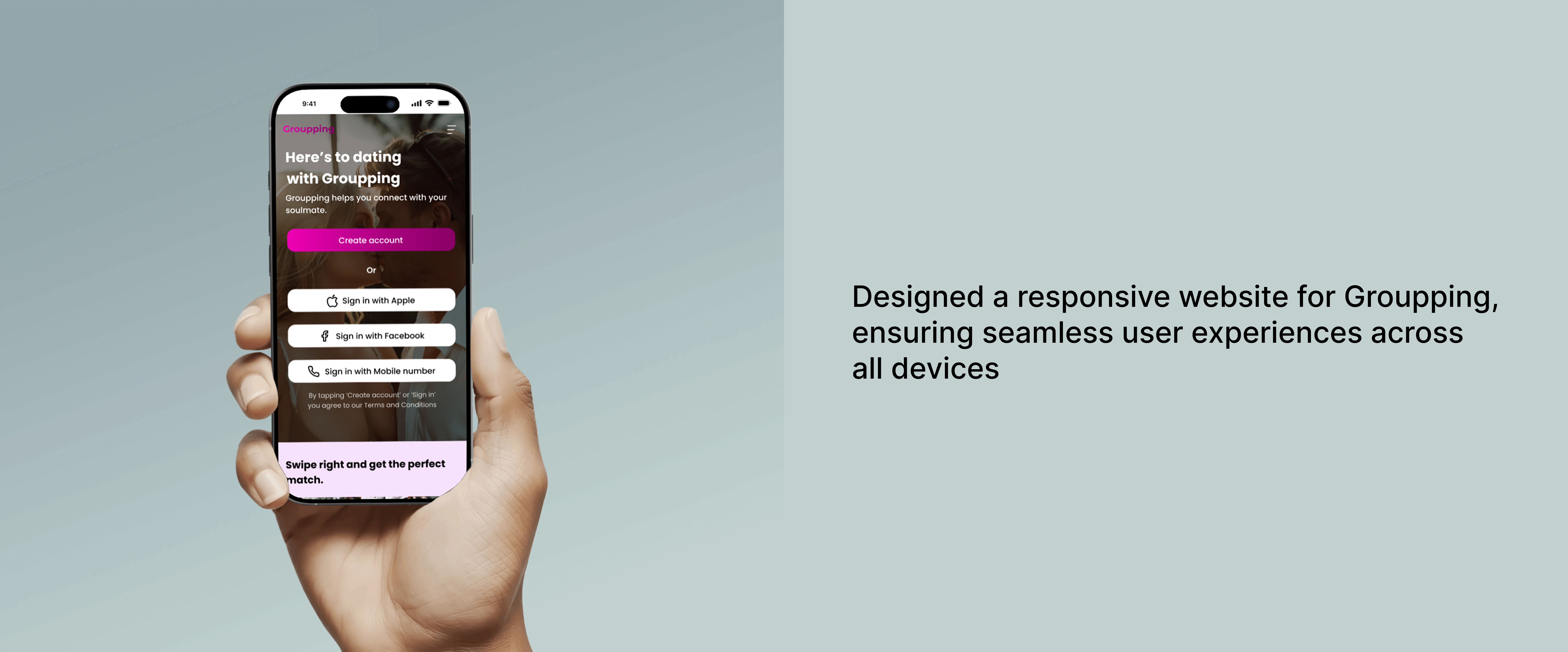 To design a visually captivating and intuitive dating app that prioritizes user comfort, seamless navigation, and effective matchmaking. Groupping aims to make dating fun, inclusive, and effortless for users seeking meaningful relationships.