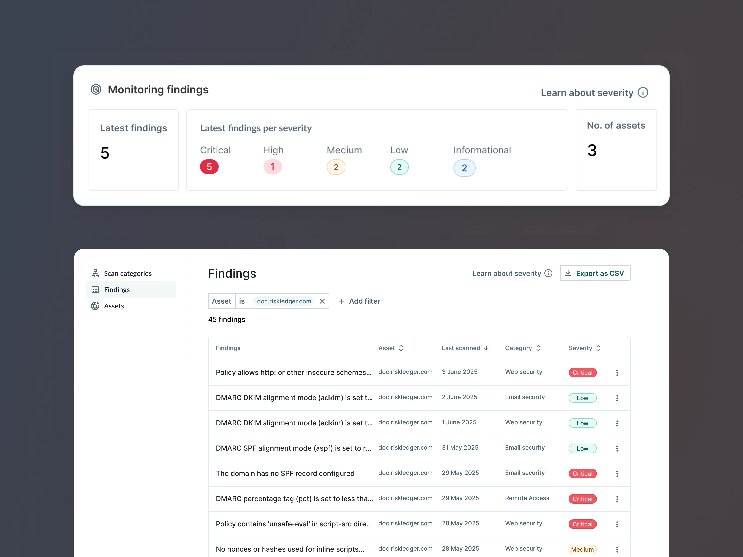 We’ve introduced two new ways for Clients to quickly view Supplier scans and help prioritise the findings they should be looking at, focussing on critical issues or specific assets.