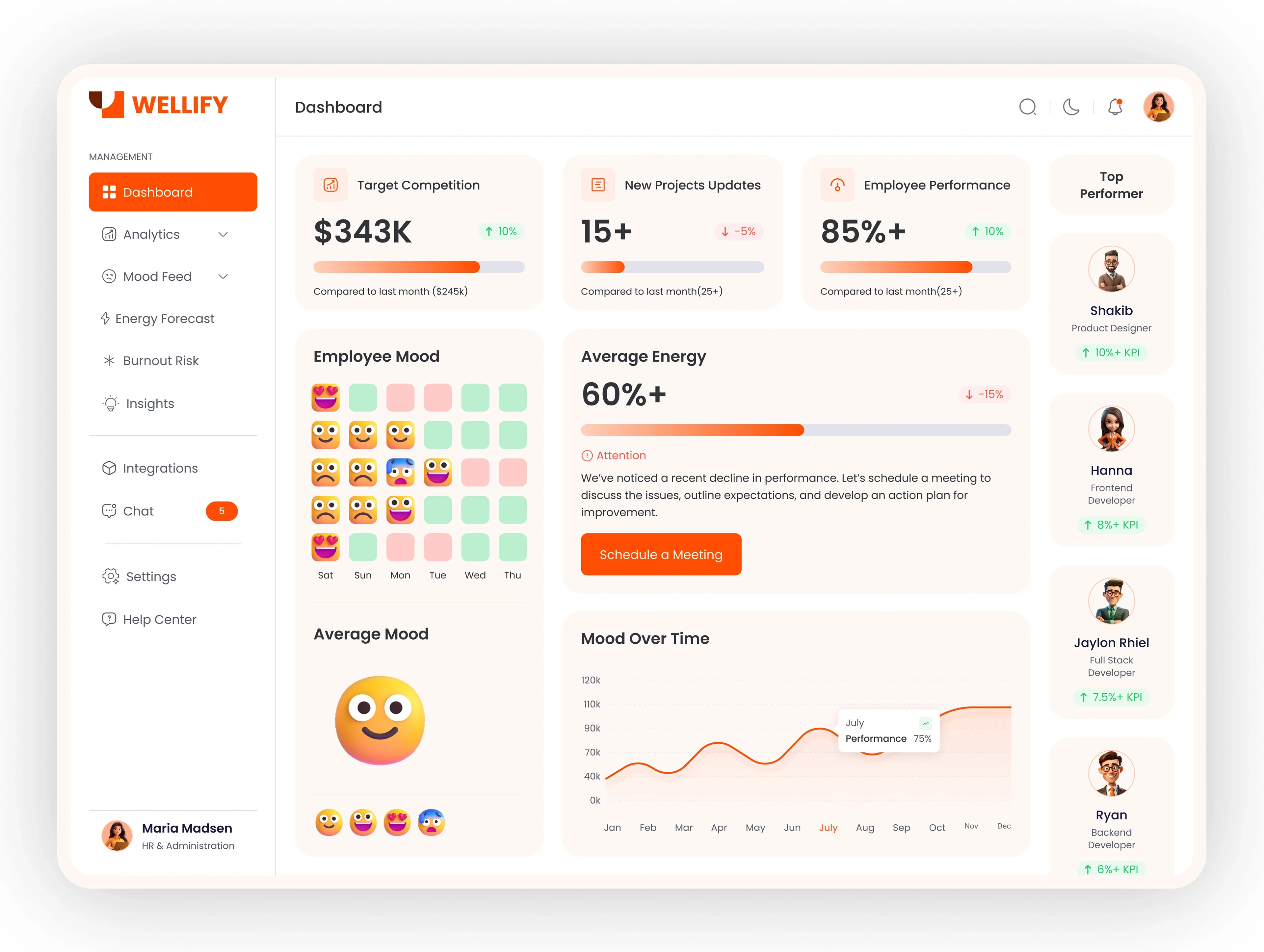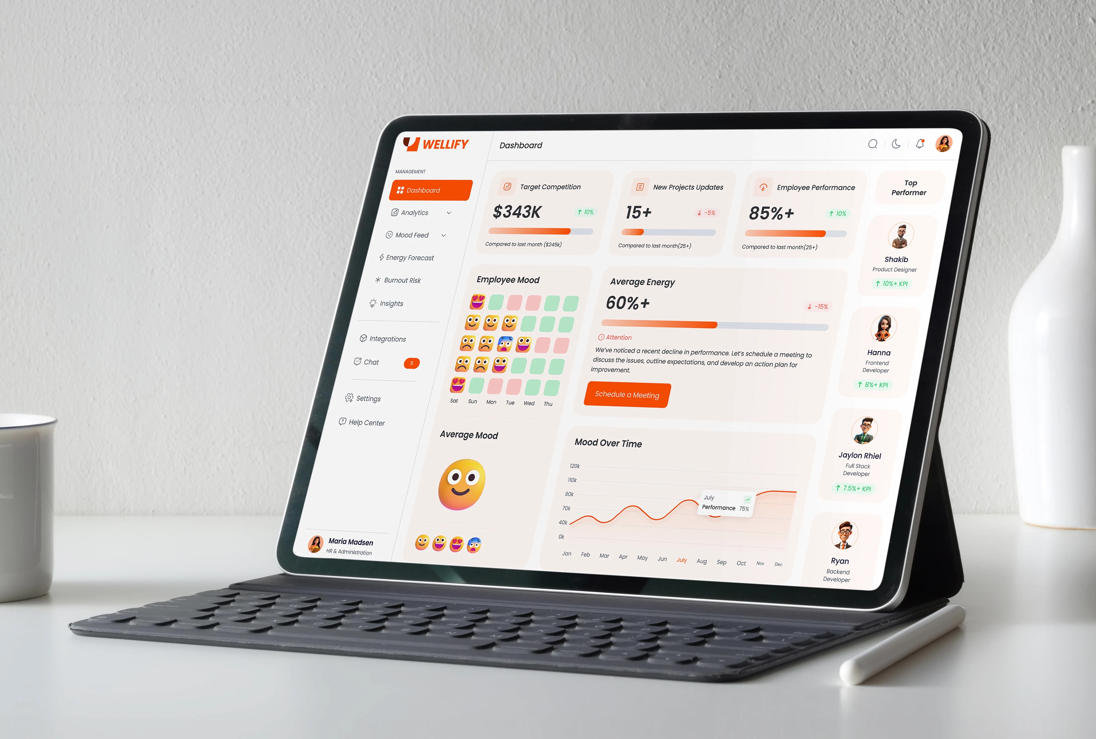This is an AI-powered team analytics platform that integrates with tools like Zoom, Slack, Skype, browsers, and task apps to monitor employee activity and mood.