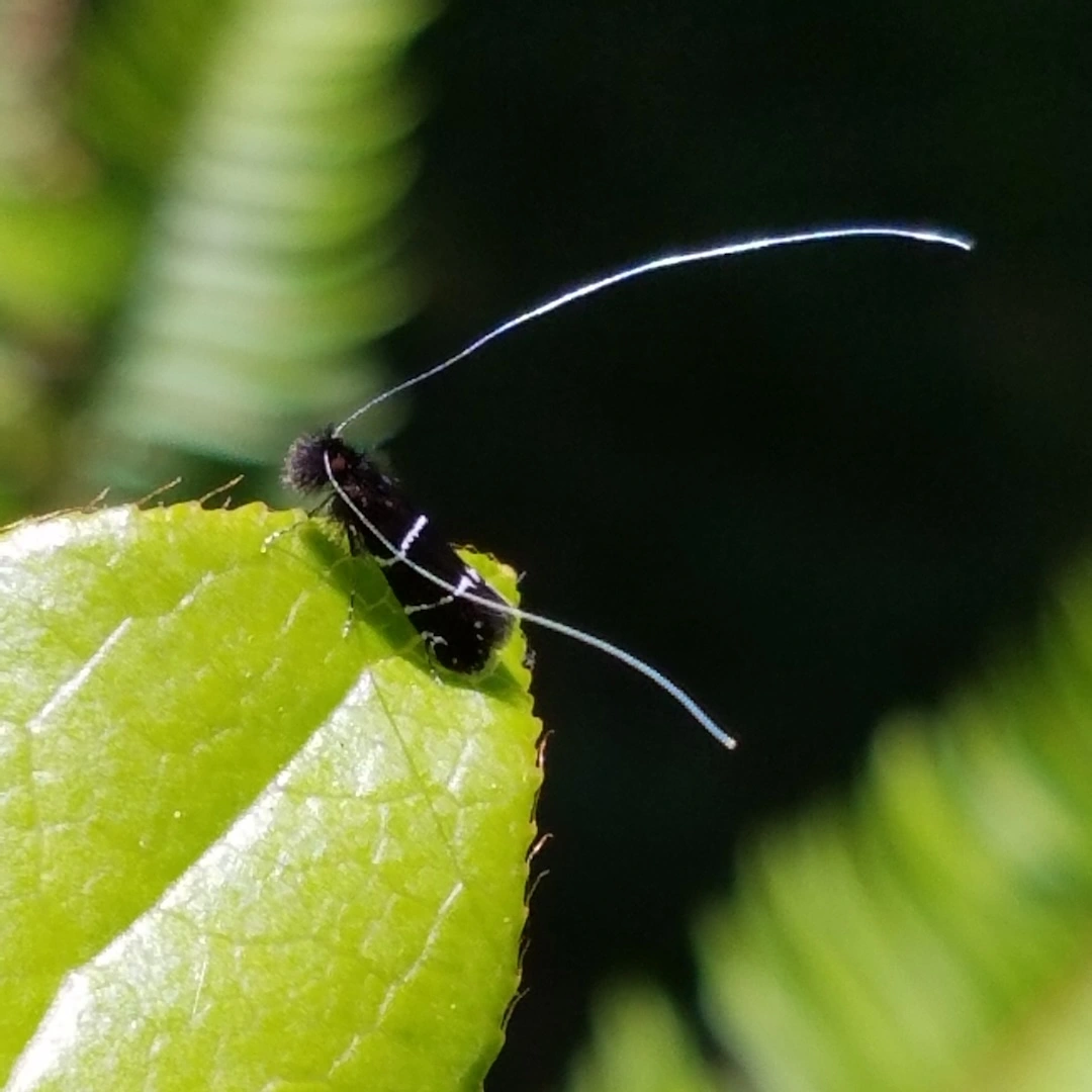 What he observed was that, during the swarming, the male fairy moths use the long tibial spurs on their hind legs to slash and fray the wings of other males, attempting to disable or kill their competitors. Dr. Watson hypothesized that, while this combative activity is taking place, the female fairy moths are watching upwind, 15 or 20 feet away, from nearby leaves. They release a pheromone, letting the males know they are being observed, which intensifies the combat. He has observed that the prevailing males work their way to the middle of the swarm, which affords the greatest protection. Eventually, the females fly through the middle of the swarm. They engage in evasive flight so that only the fittest males with the most energy can catch and mate with a female.