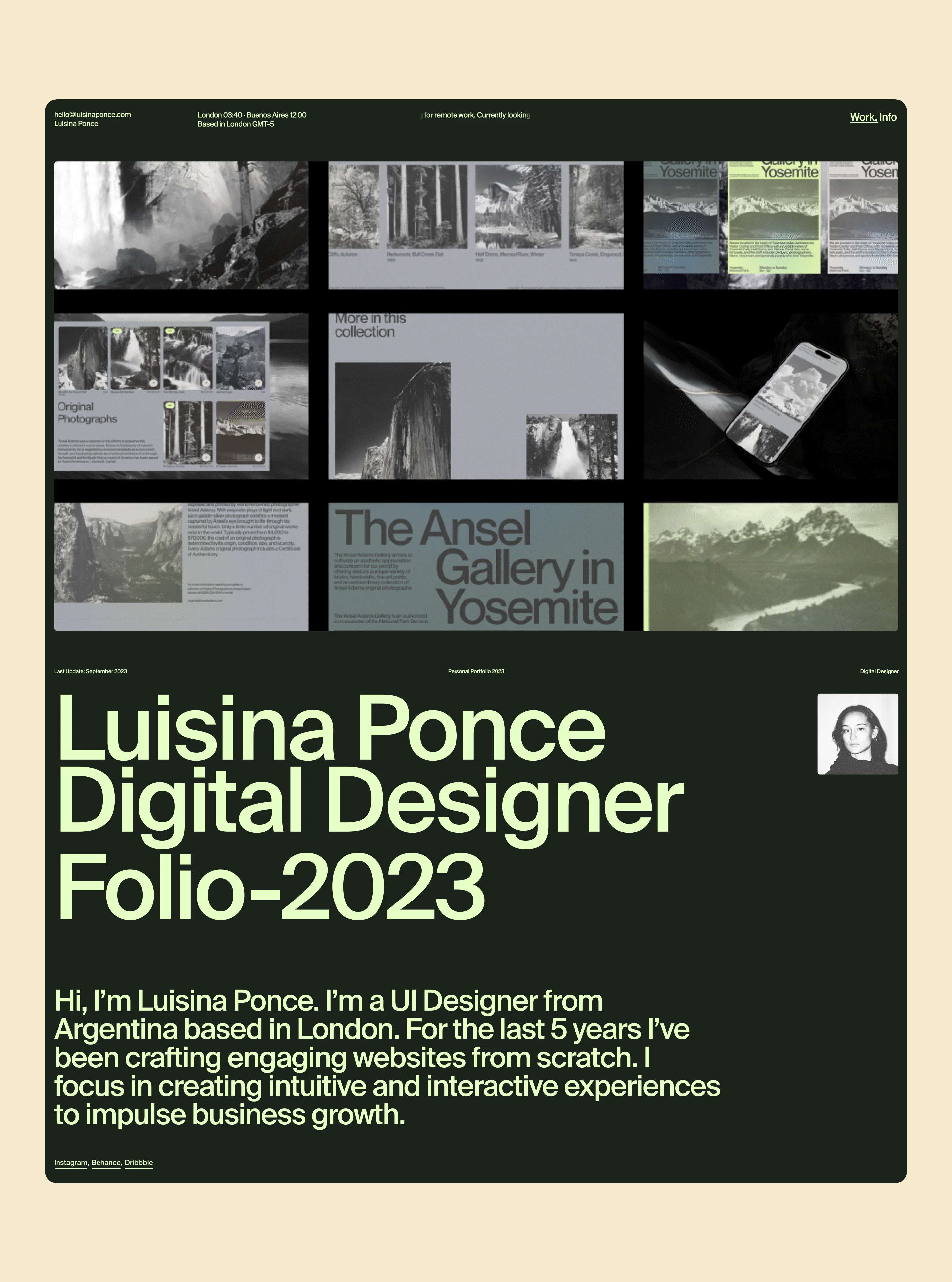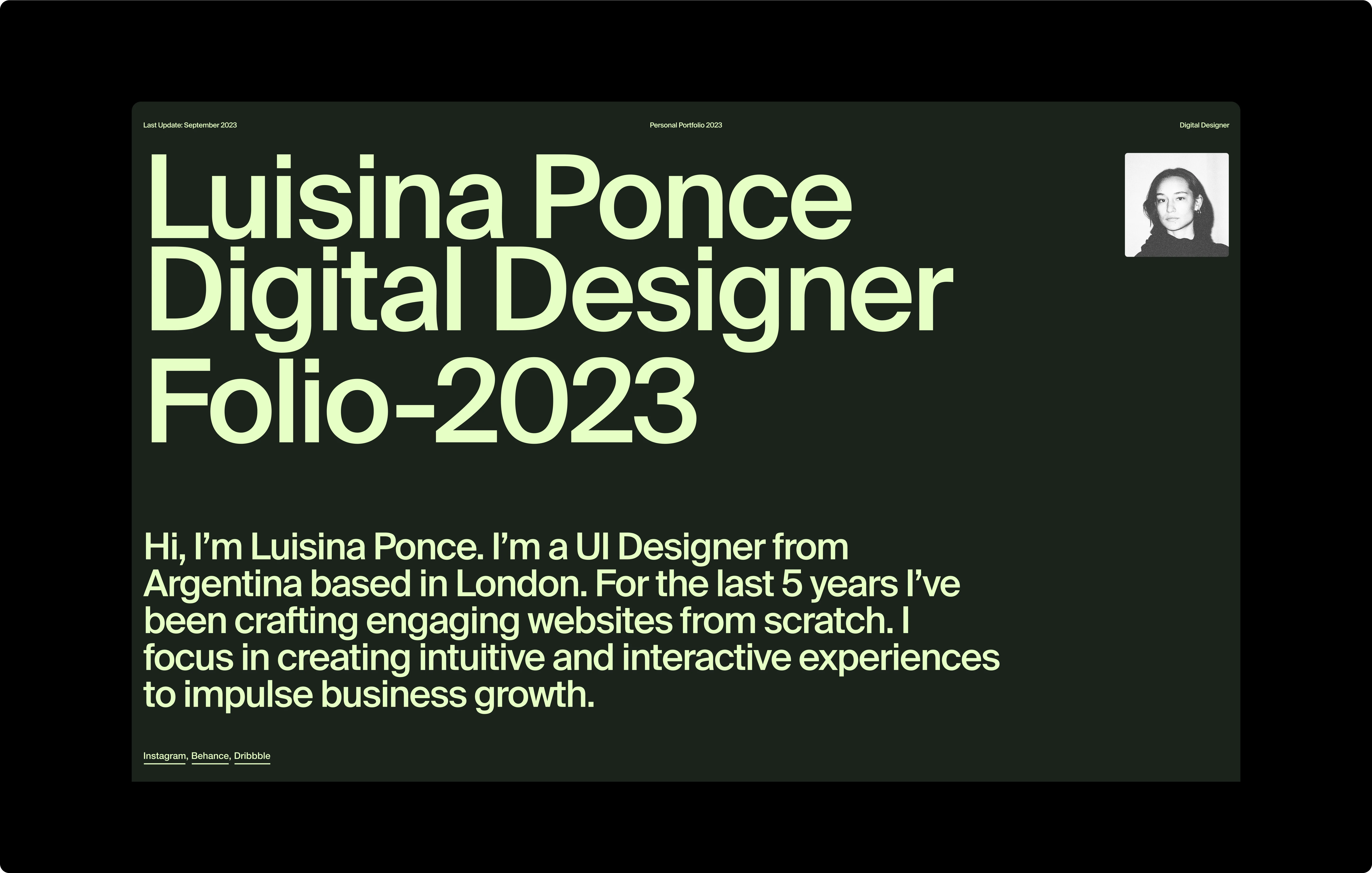 Luisina Ponce is a UI Designer from Buenos Aires based in London. She’s an expert in creating intuitive and interactive experiences to impulse businesses grow. Her trained artistic eye together with her expertise in user behavior delivers engaging and functional websites and apps from. During this time, I’ve worked developing her portfolio designs in Webflow