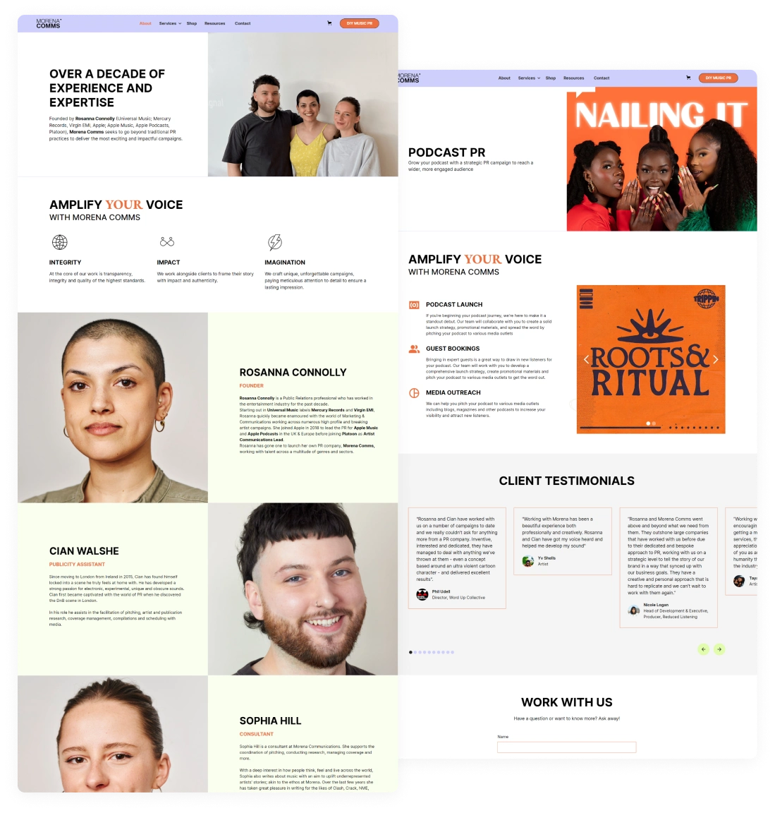 Morena Comms, spearheaded by Rosanna Connolly with a rich background at Universal Music, Virgin EMI, and Apple, offers unique PR campaigns tailored to the specific needs of artists and entertainers. They focus on telling captivating stories through various mediums including print, online content, podcasts, and social media.