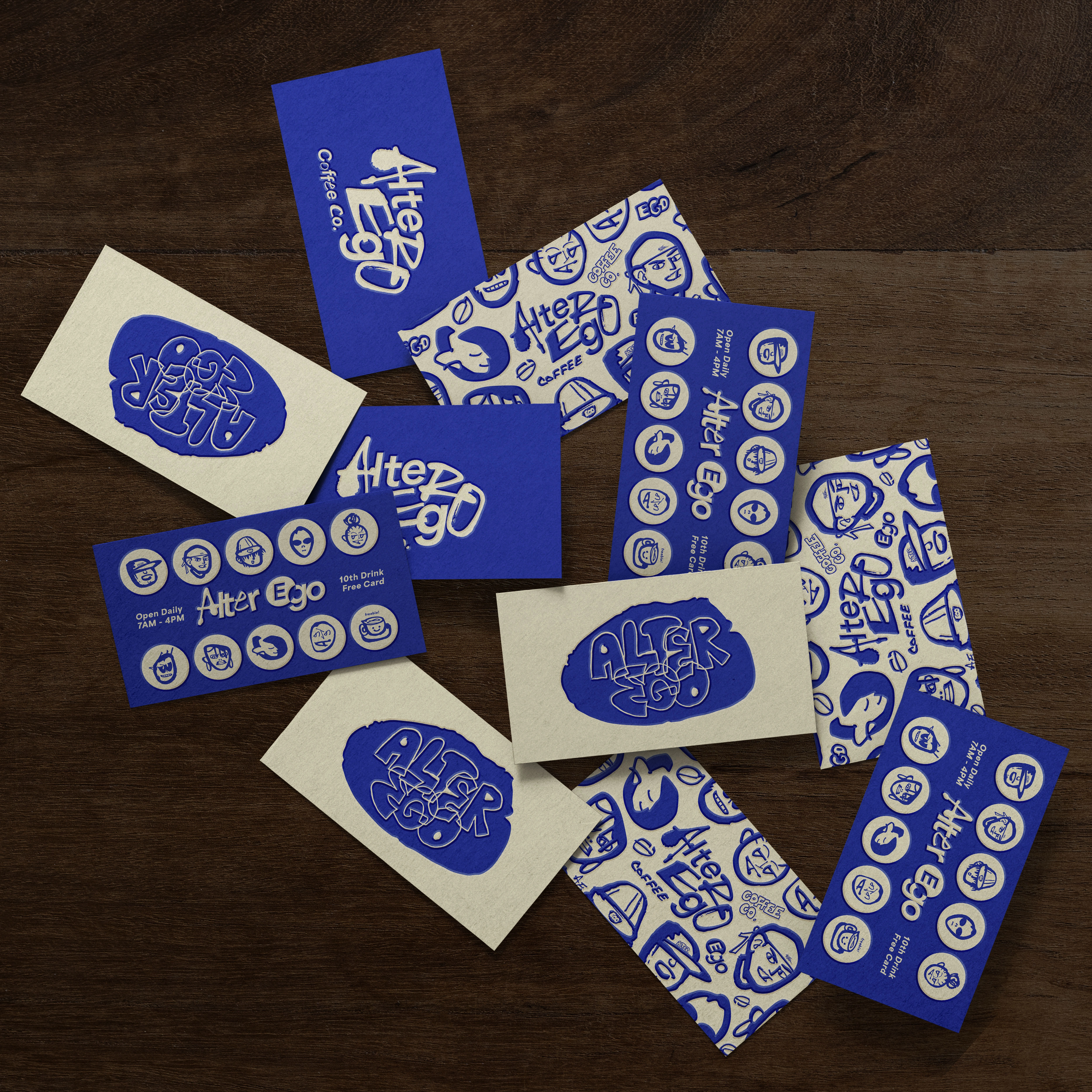 BRAND CONCEPT - Alter Ego Coffee Co. Illustrative Branding package for coffee shop located in Los Angeles looking to become a community beacon.