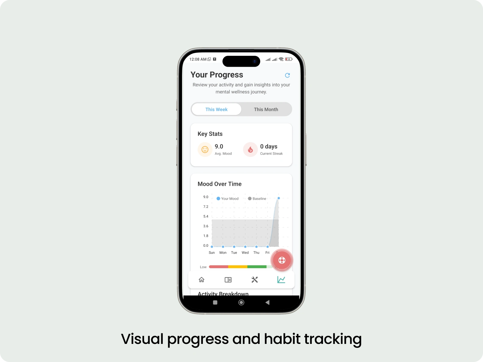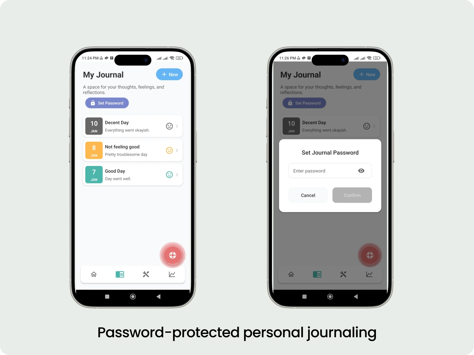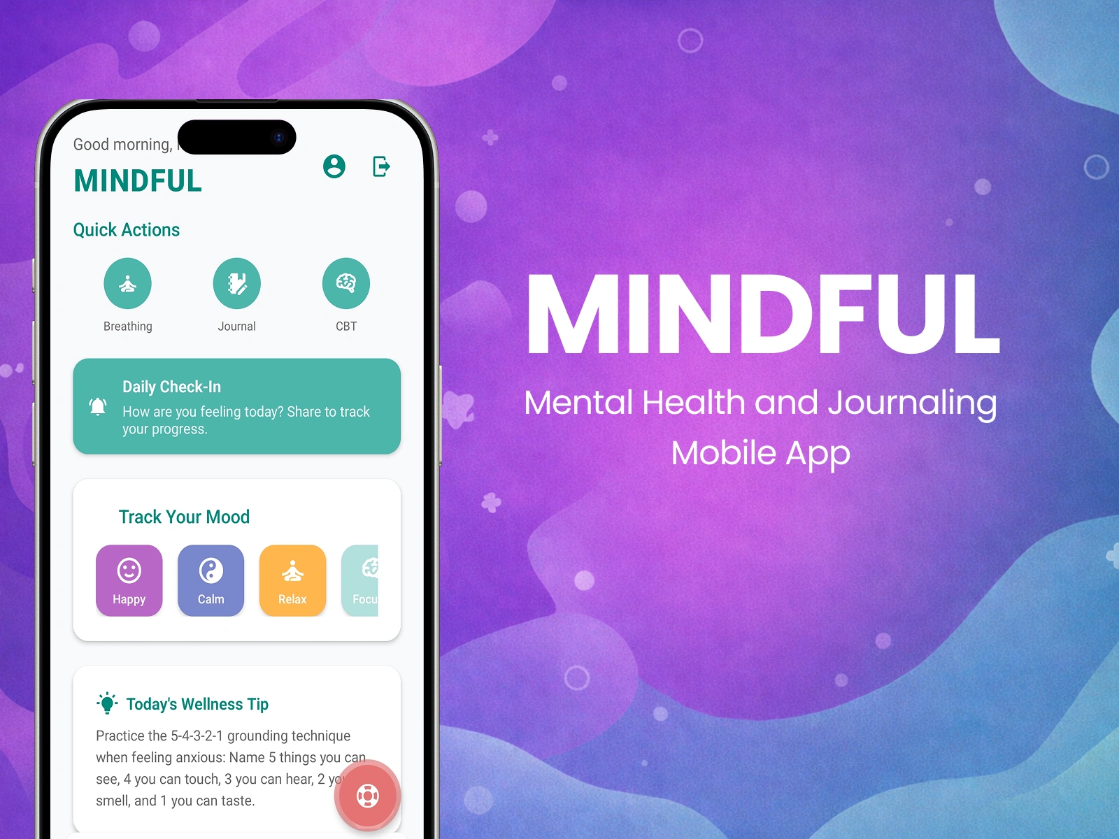 Mindful is a mobile app designed to help users reflect, manage stress, and track their mental well-being through private journaling and mental health tools.