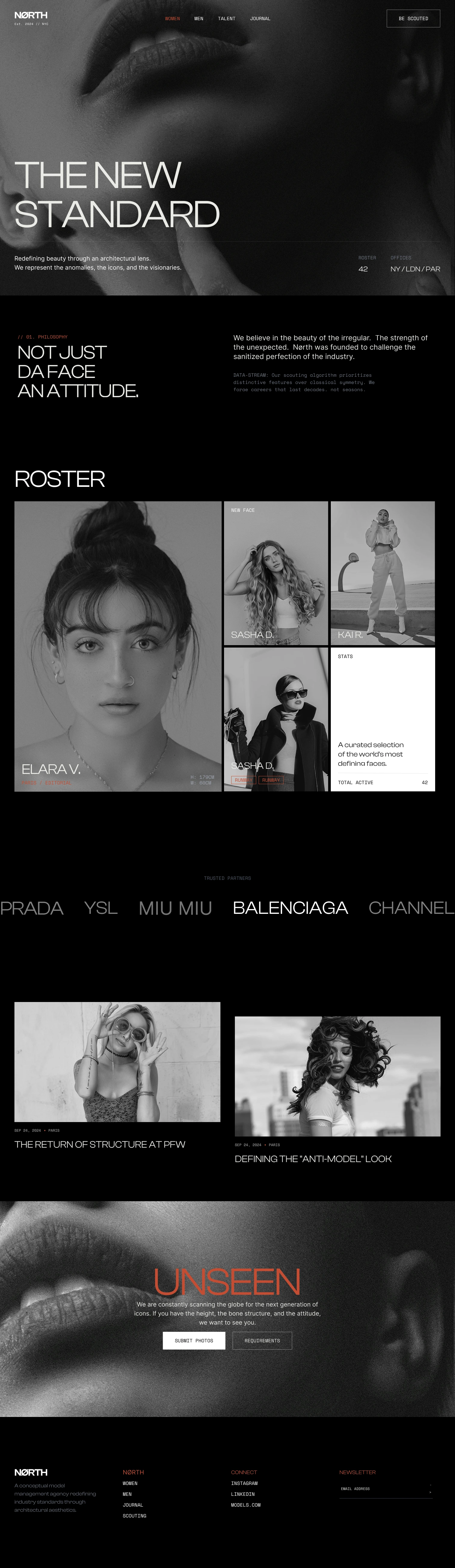 The experience is built around a simple, calm scroll allowing faces, names, and presence to speak for themselves. Subtle typography, a restrained color palette, and generous spacing reinforce a timeless and confident identity aligned with high-end fashion and talent agencies.