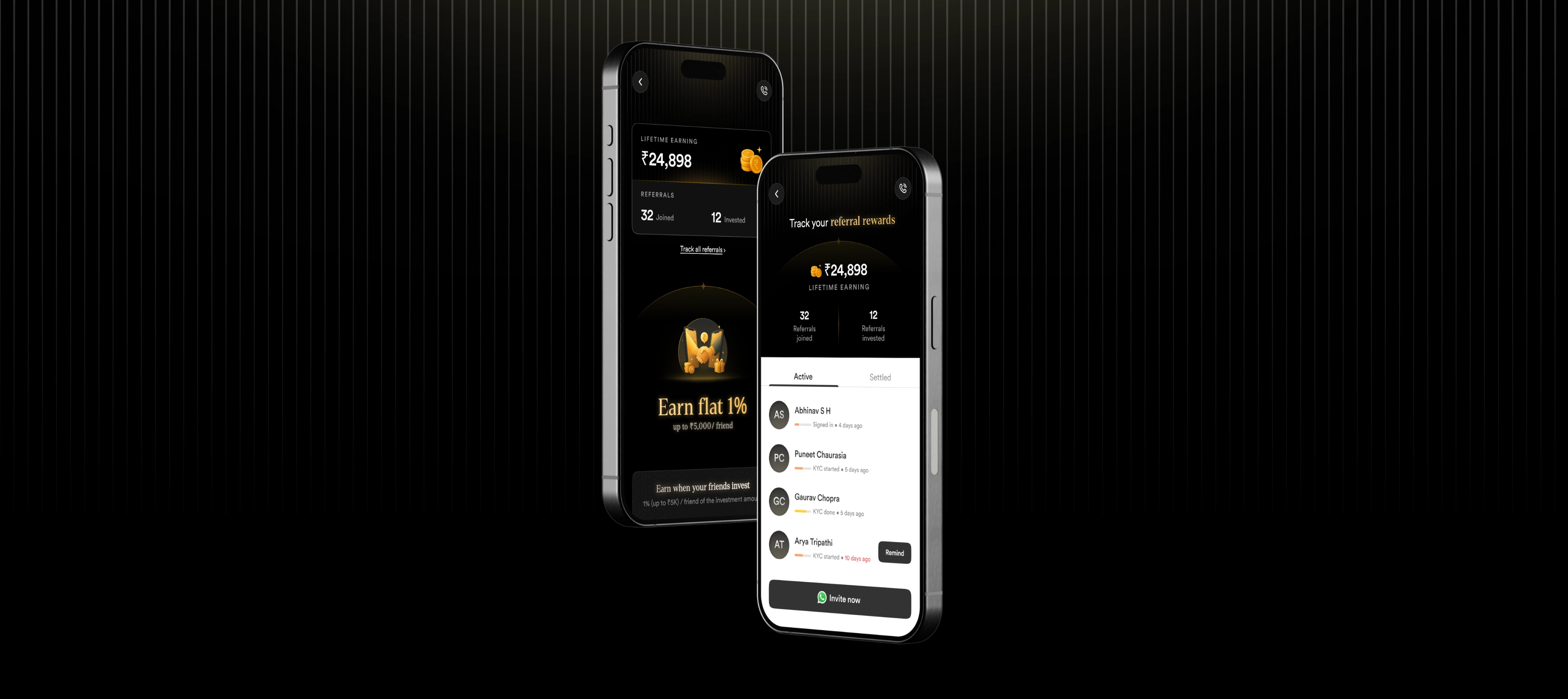 Built a bond-referral flow with a flat 1% reward, up to ₹5,000, and a live tracker that fuels organic growth and sustains user engagement.