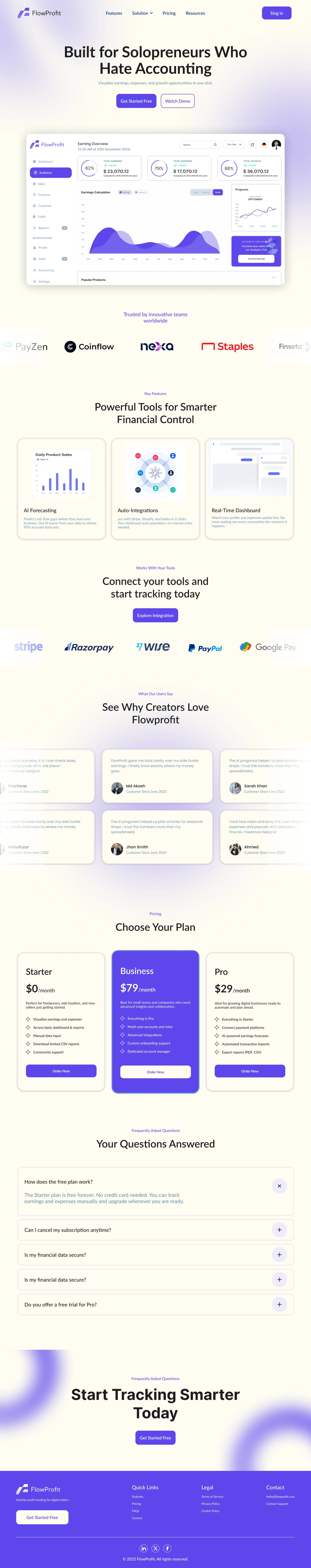 Smart profit tracking dashboard and landing page for digital sellers. Clean UI UX, clear flow, modern SaaS design.