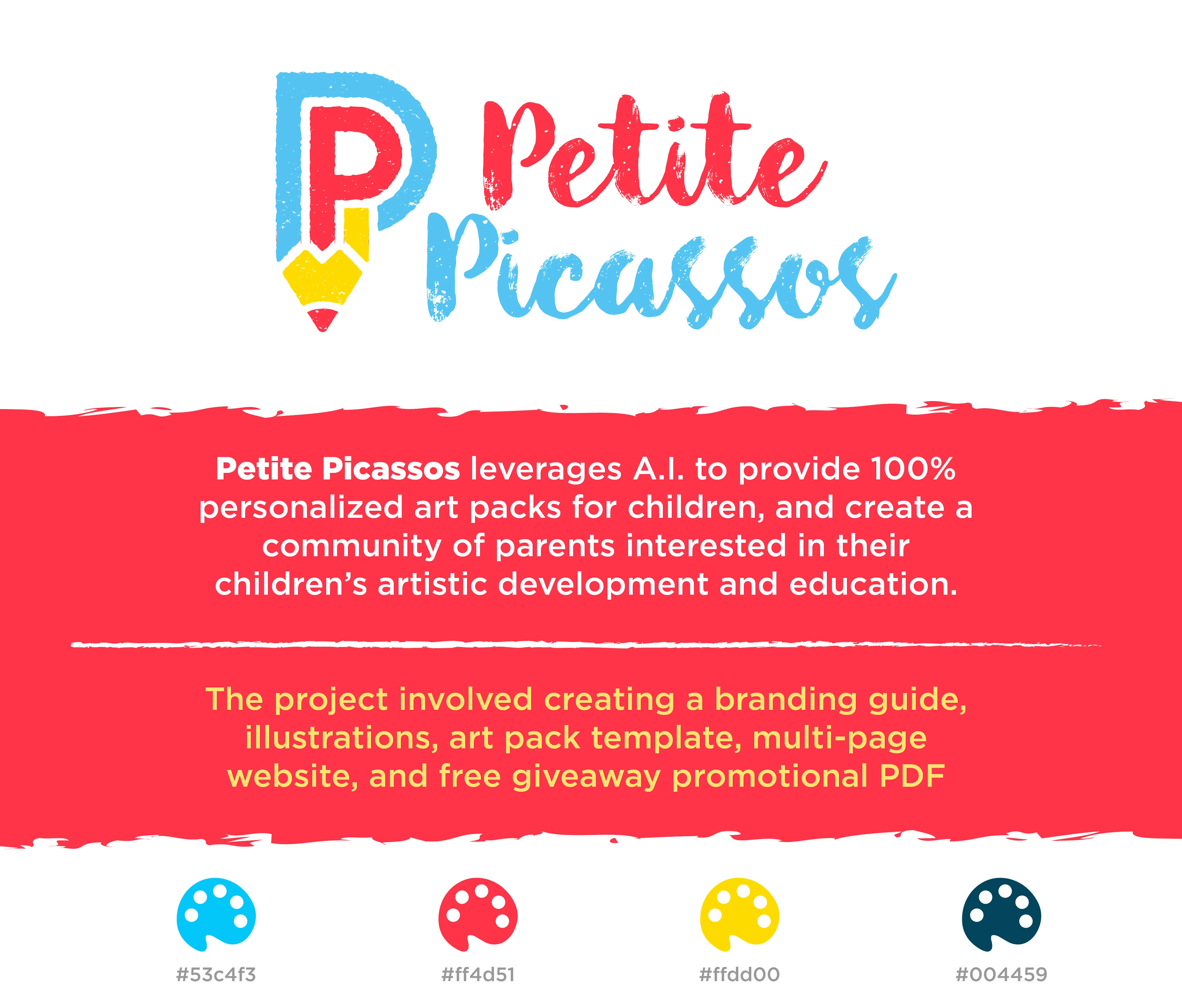 Petite Picassos leverages A.I. to provide 100% personalized art packs for children - I designed the entire visual identity, website and illustrations