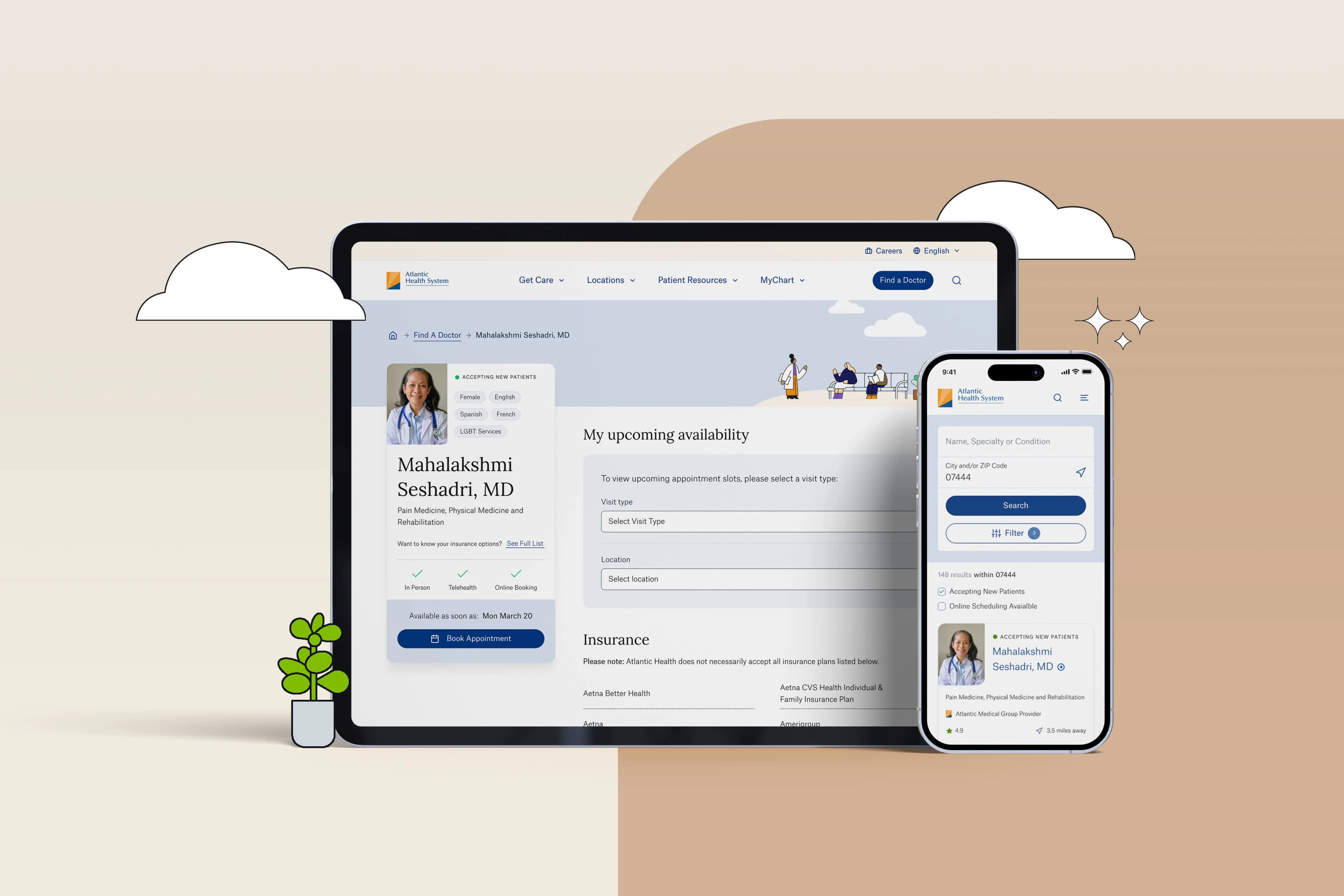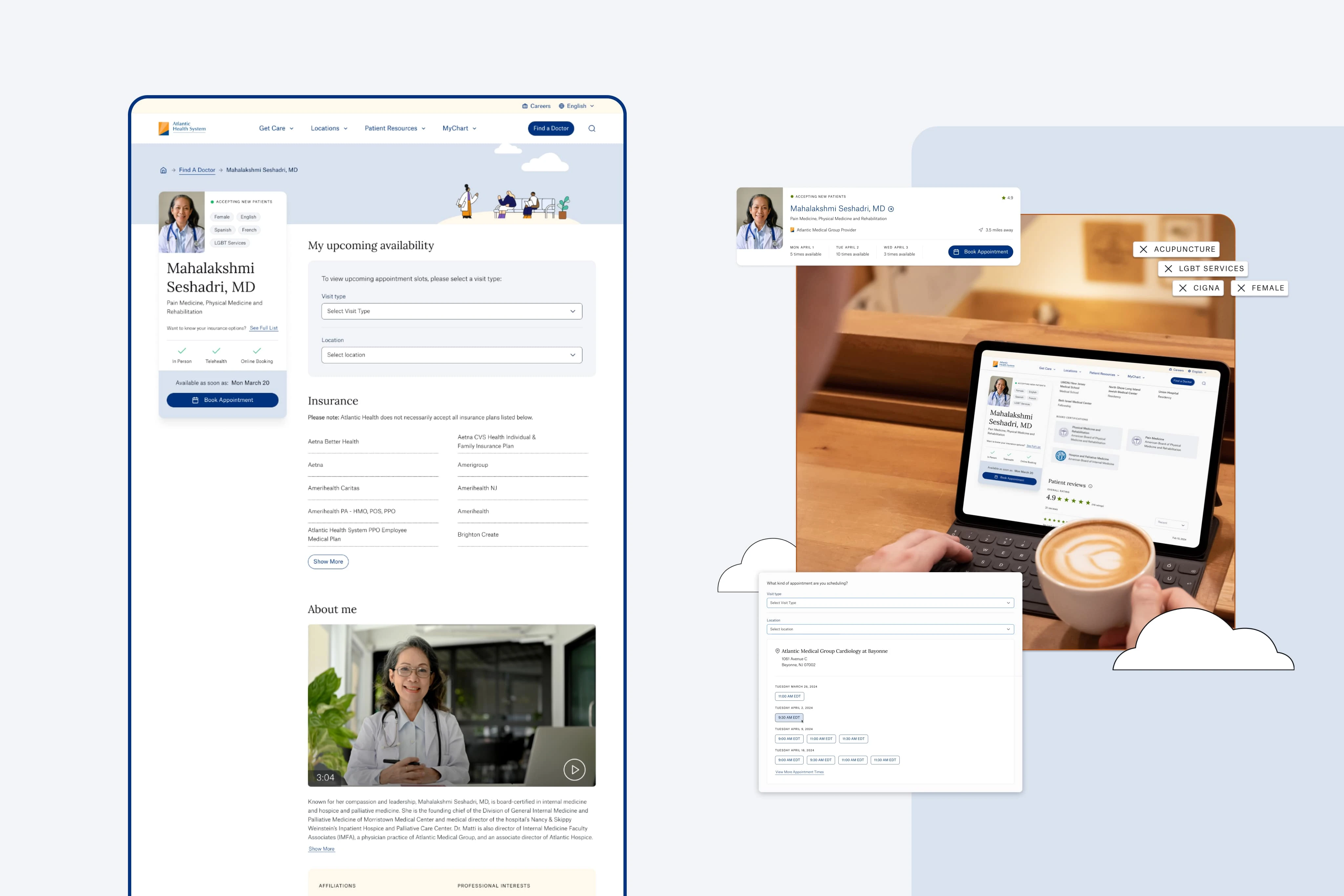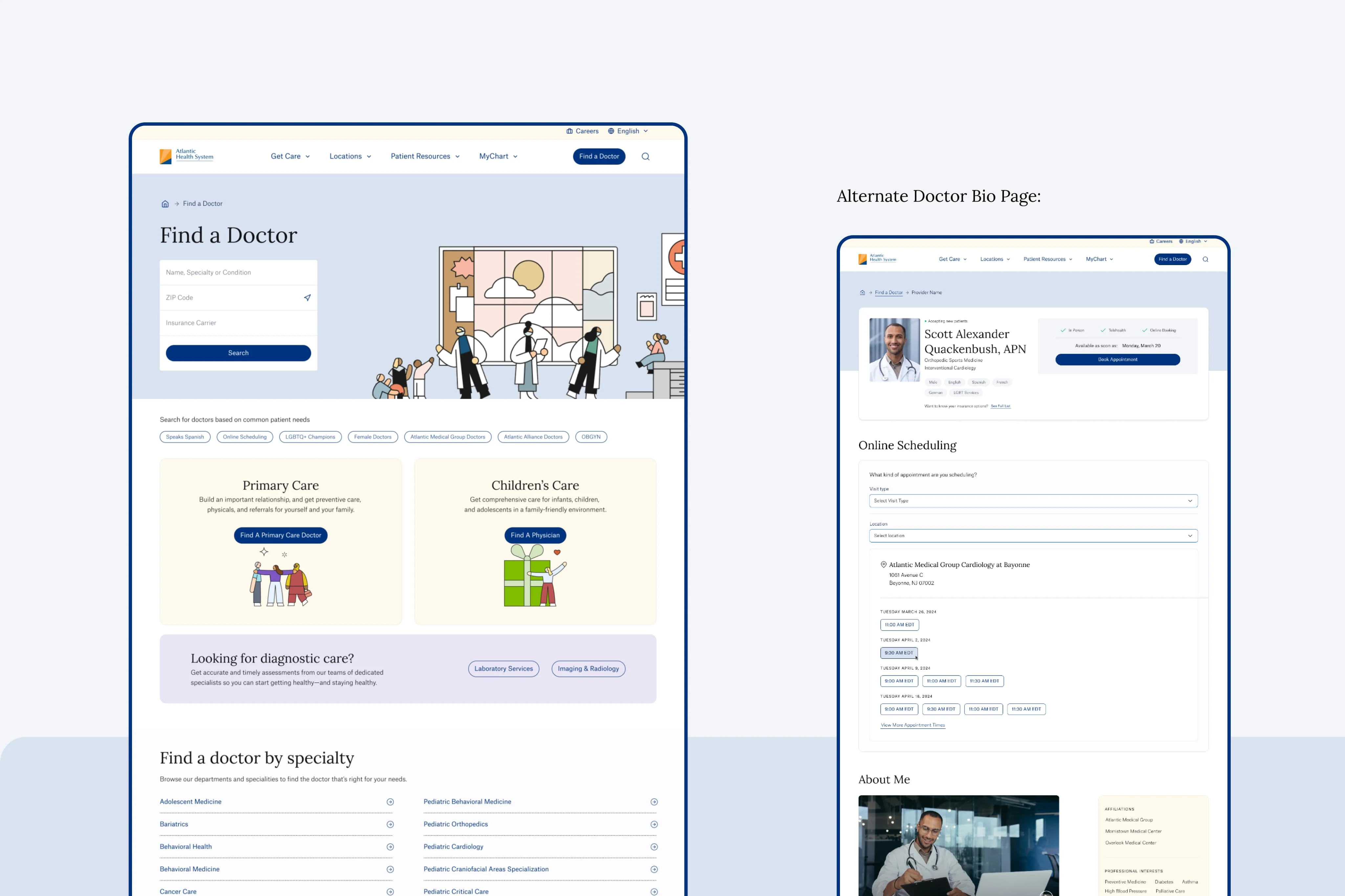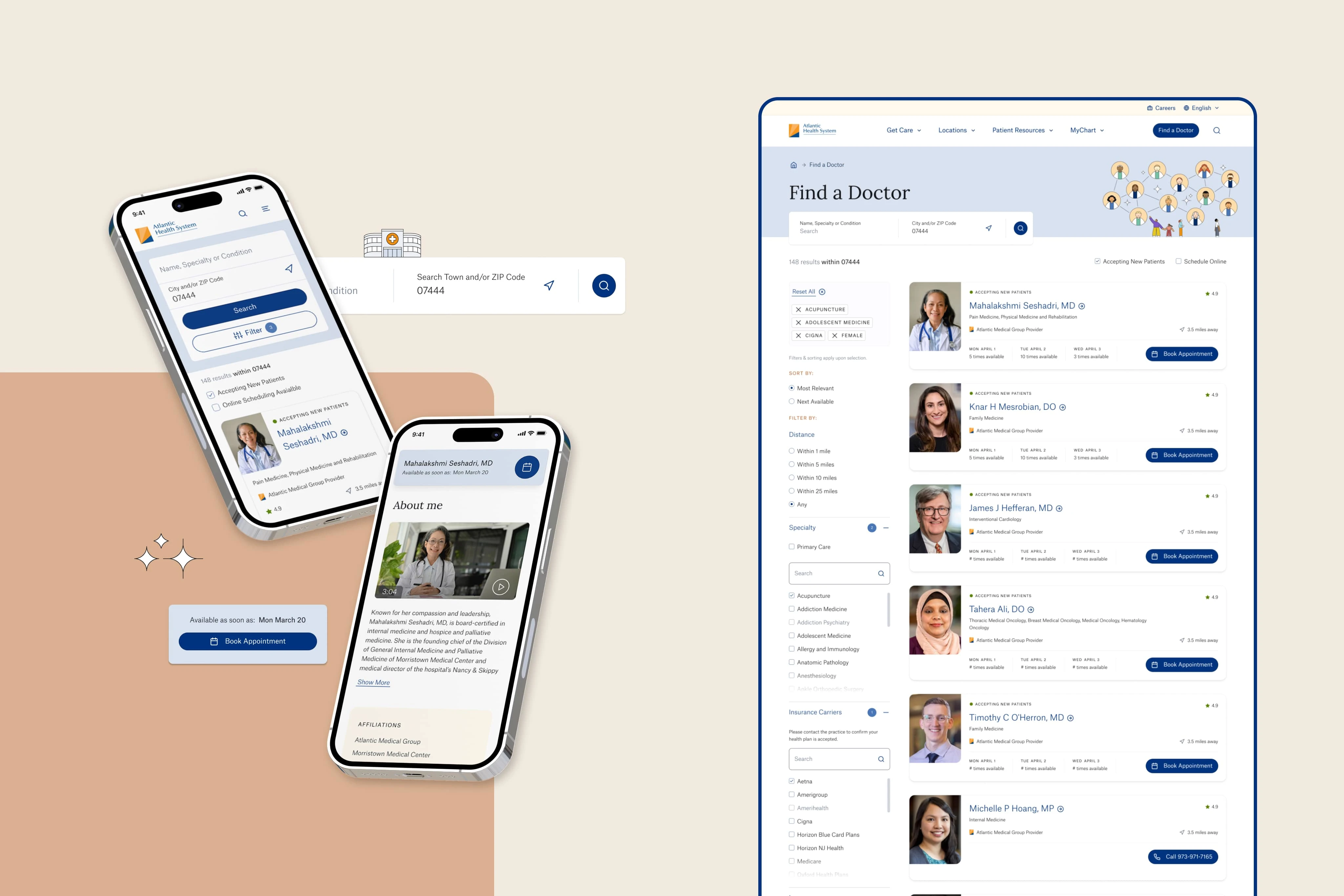 Redesign the 'Find a Doctor' experience with an intuitive, user-centered interface that streamlines navigation, simplifies provider selection, and highlights key details patients value most—such as availability, specialties, and patient reviews. This approach fosters seamless patient-provider connections, enhancing satisfaction and efficiency on the AHS platform.