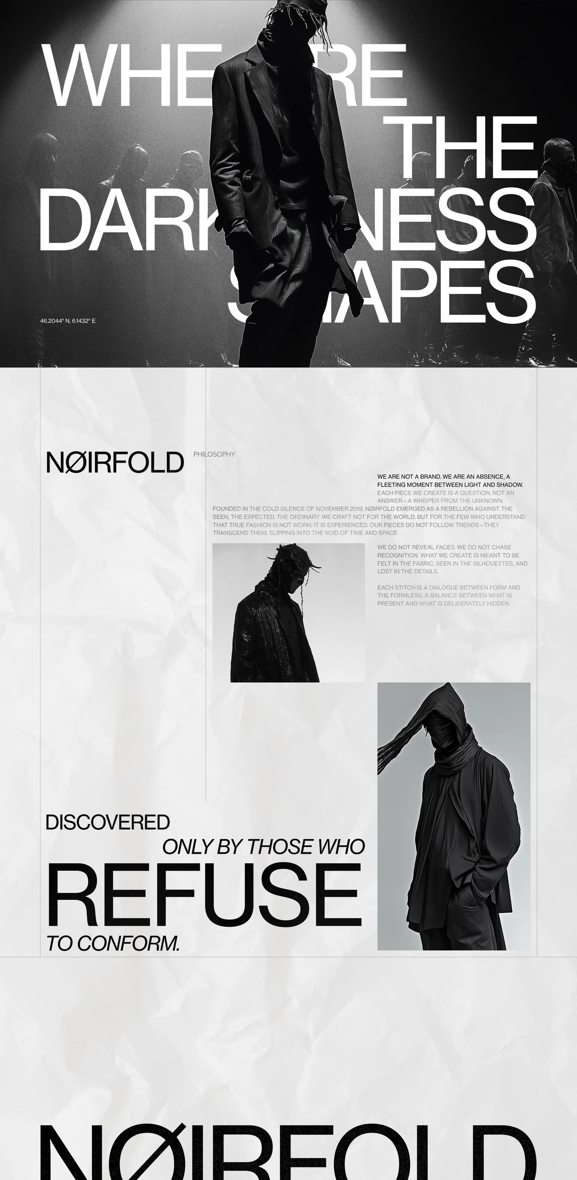 Designed and built a cinematic, immersive website for NOIRFOLD, reflecting their anti-brand philosophy.