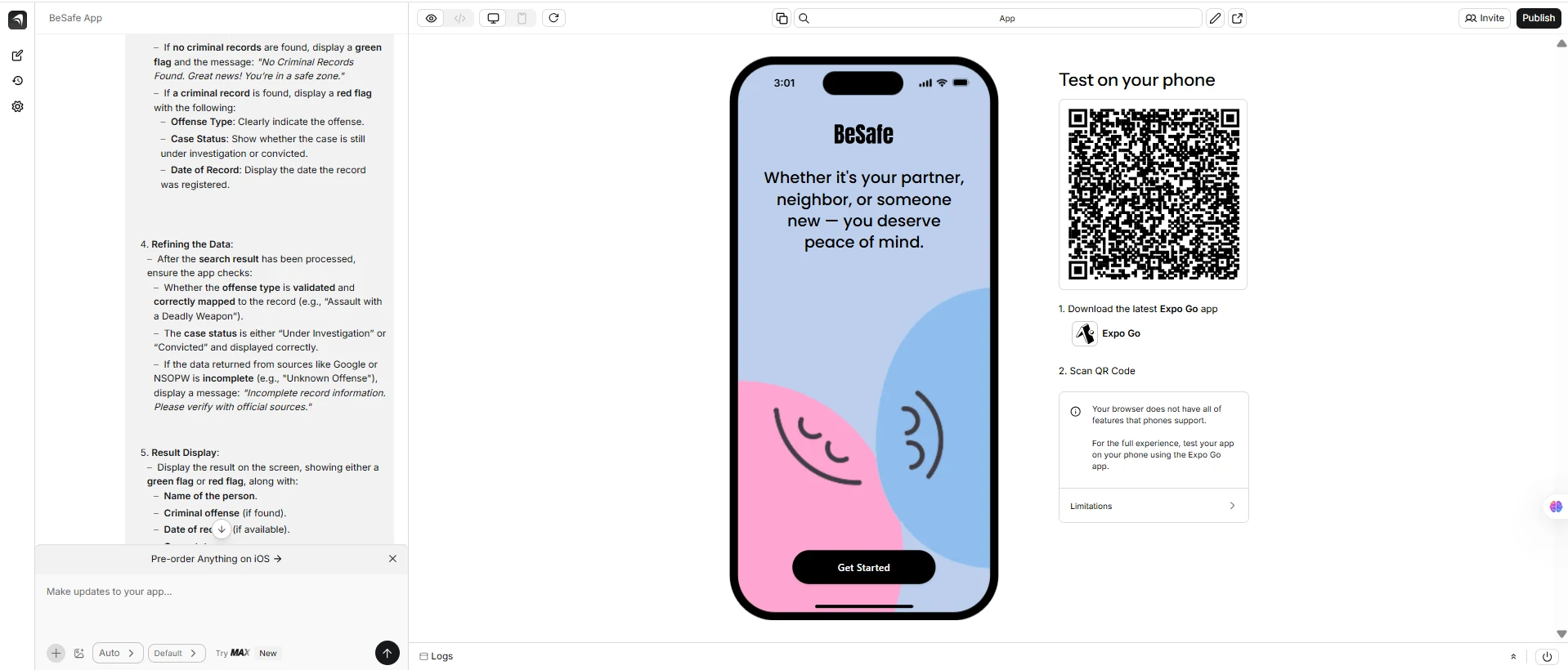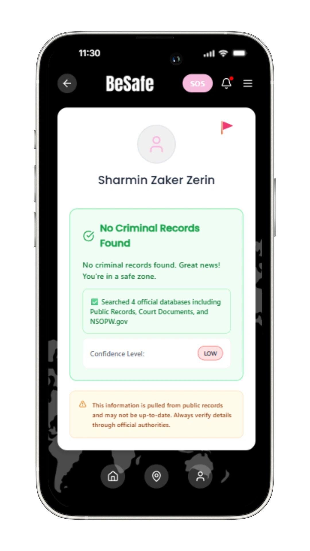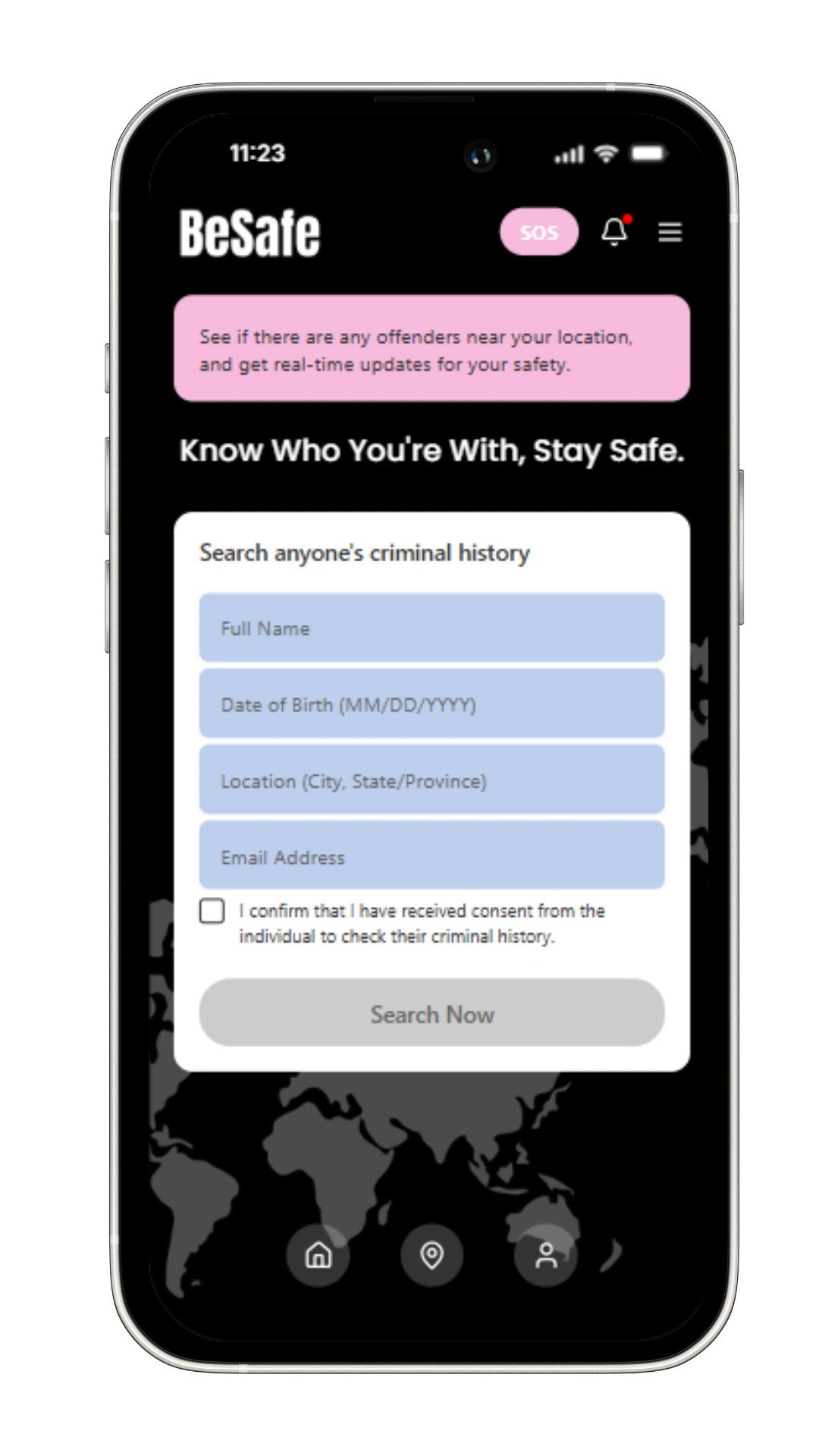 In today’s fast-paced world, connecting with strangers has become easier than ever, but this convenience often comes with risks. With the rise of online dating, new friendships, and social interactions, the question arises: How do we truly know who we are interacting with? That’s when I decided to create BeSafe, a mobile app designed to empower users to check anyone’s criminal history in seconds, ensuring their safety and peace of mind.