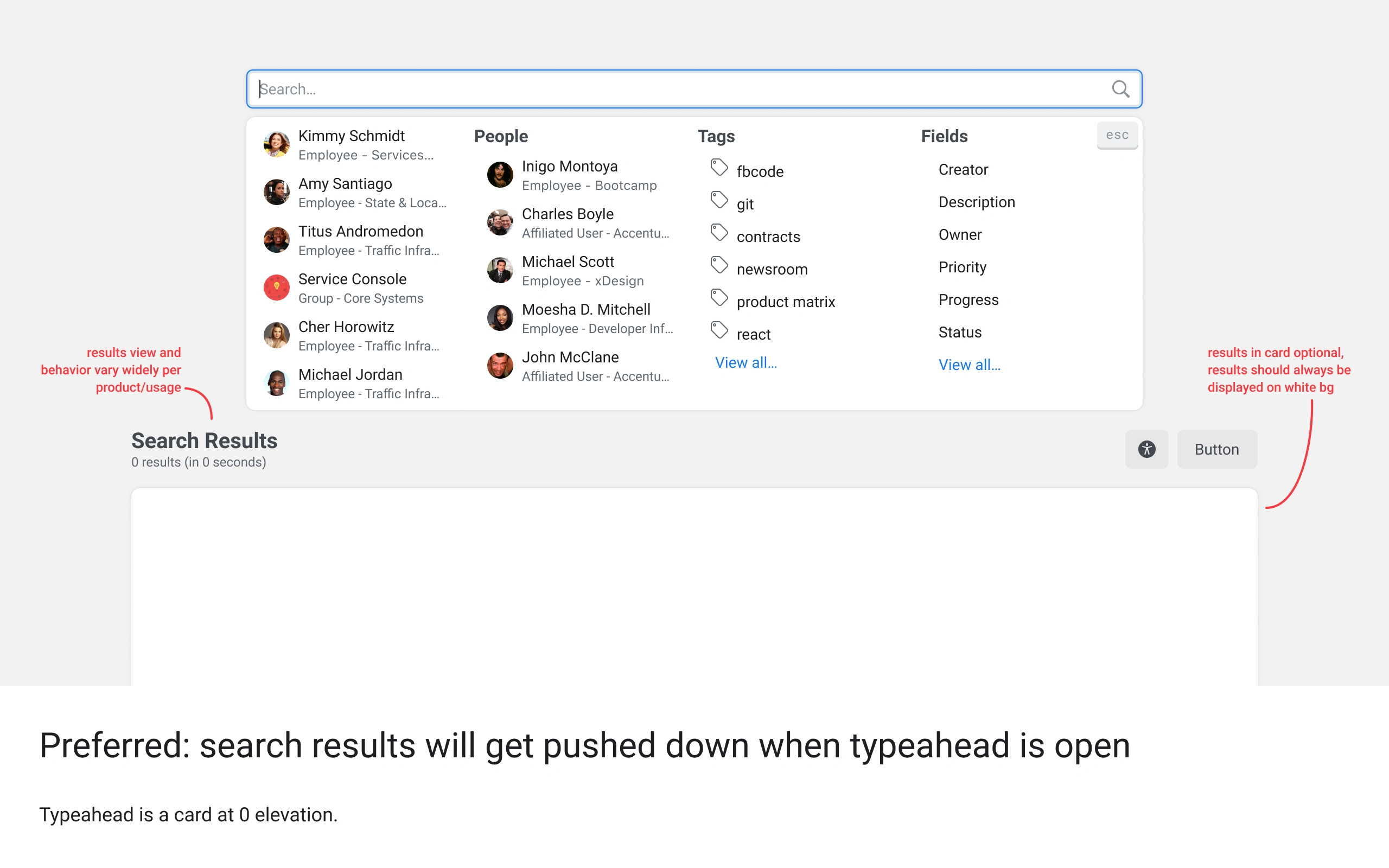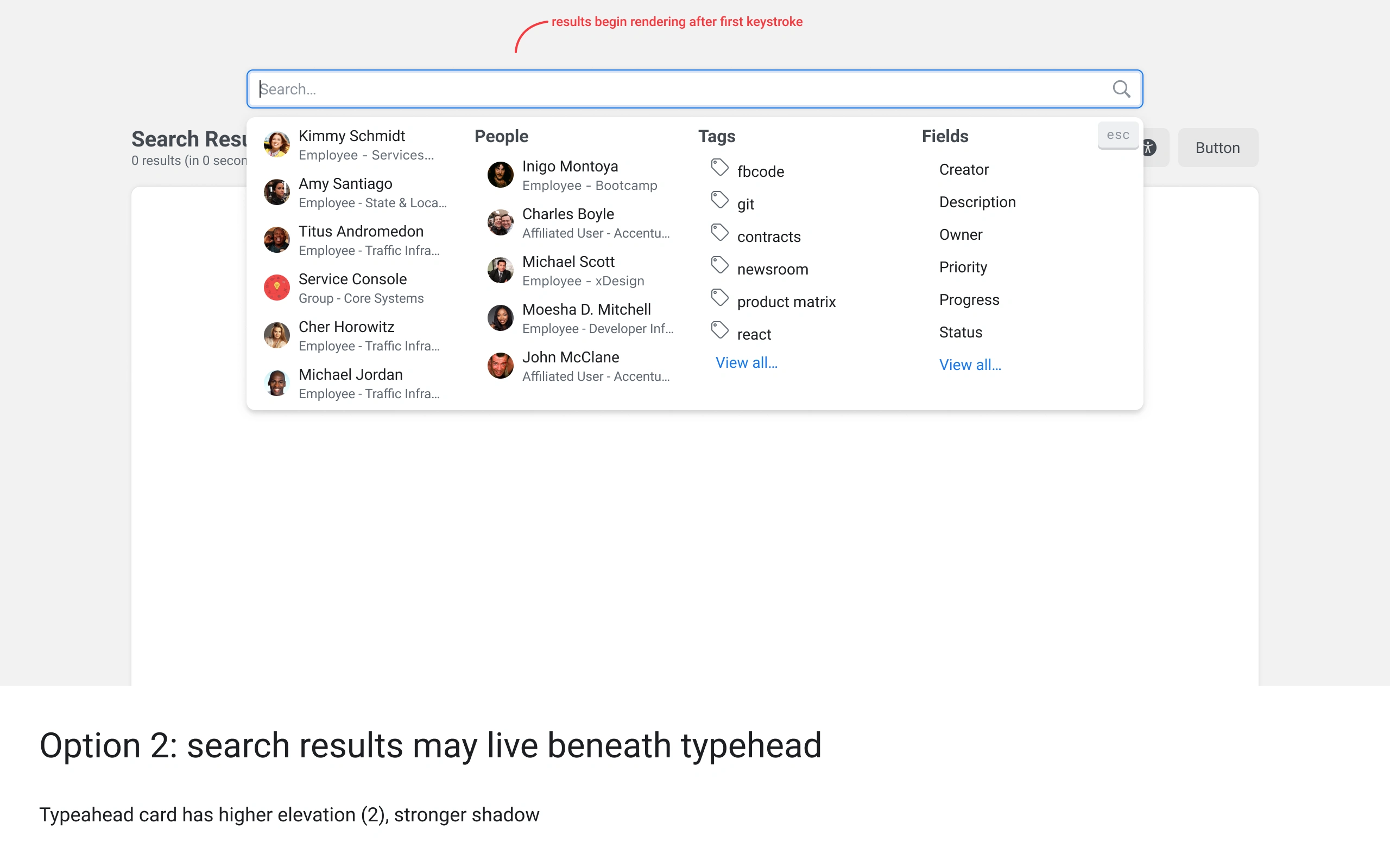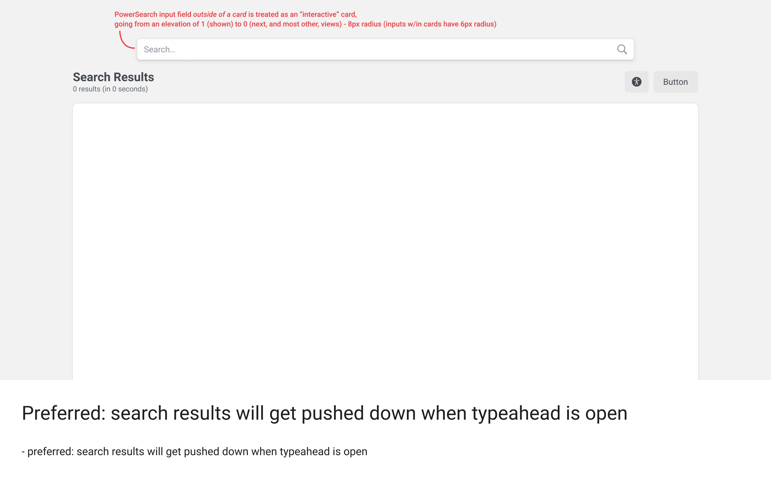 Continued efforts to apply and test a new internal design system while improving a company-wide utility, Power Search.