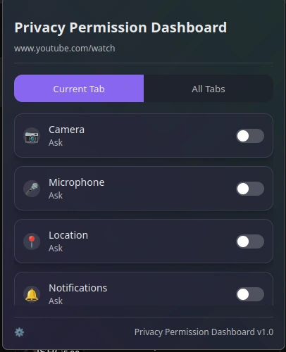 ✅ Key Features: – Dashboard view of all active site permissions in one place – Review and revoke permissions (camera, mic, location, etc.) with one click – Real-time updates when permissions are granted or changed – Clean, user-friendly interface with categorized listings – Lightweight, privacy-first design with no tracking or external data usage