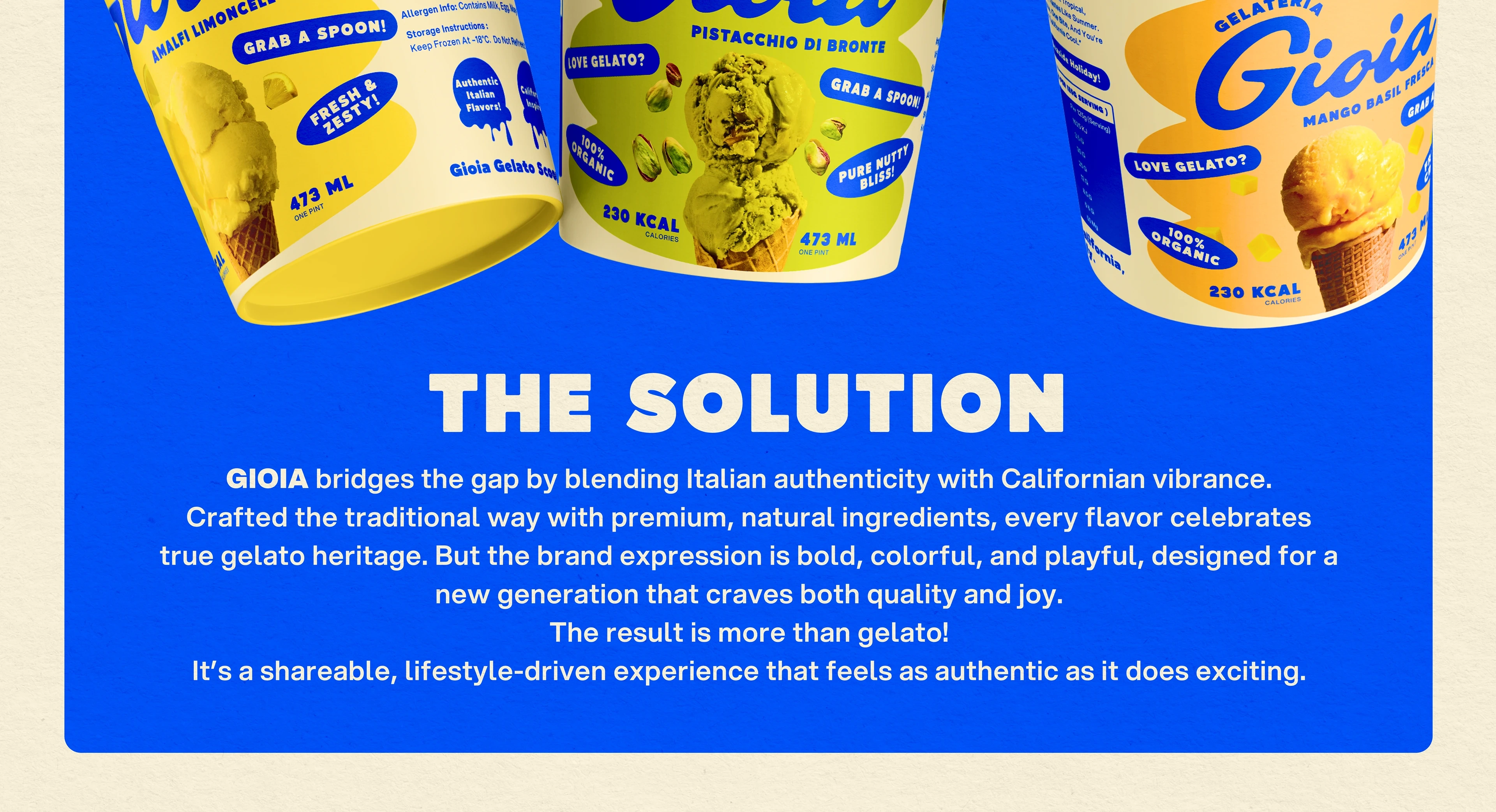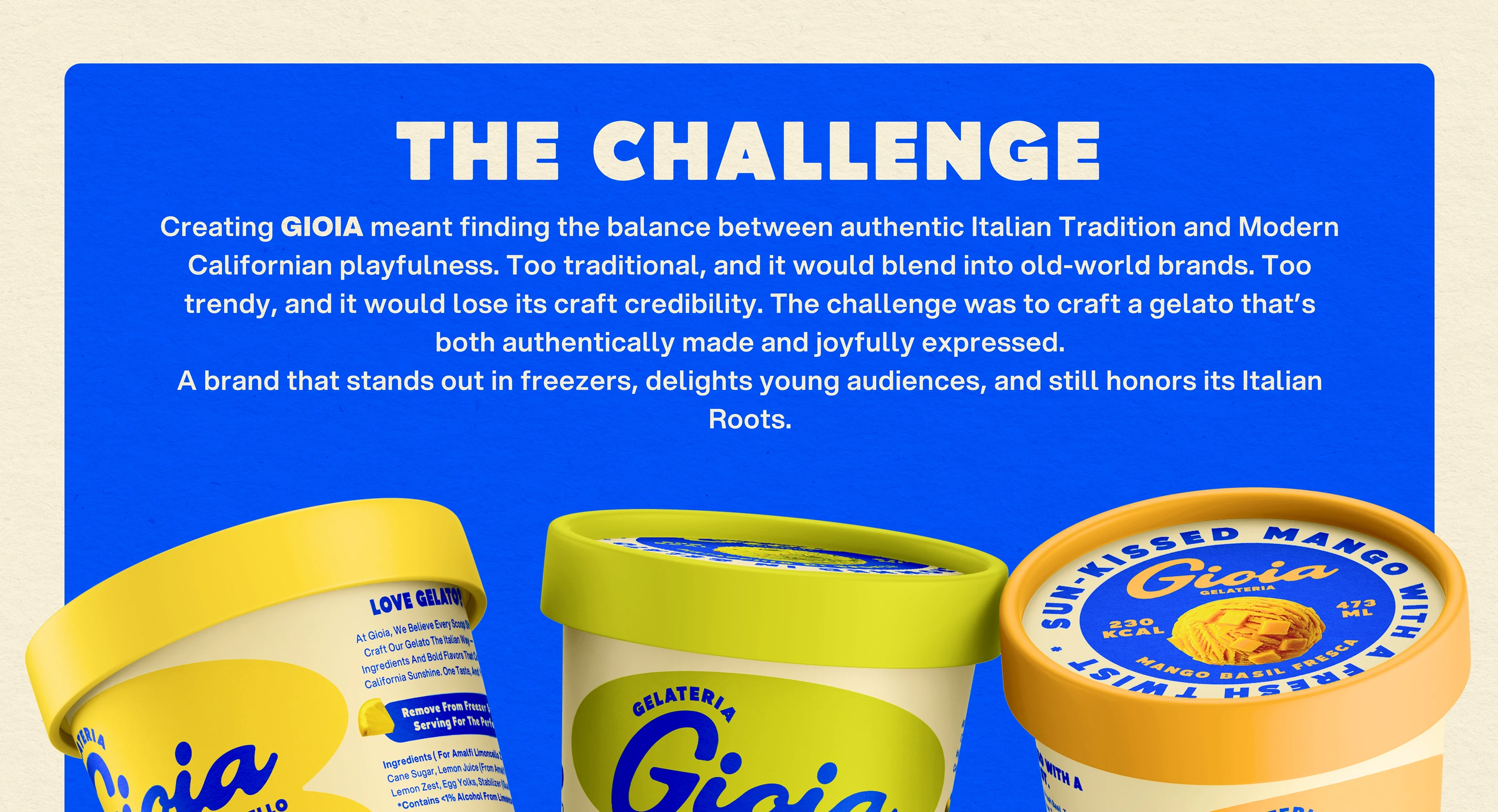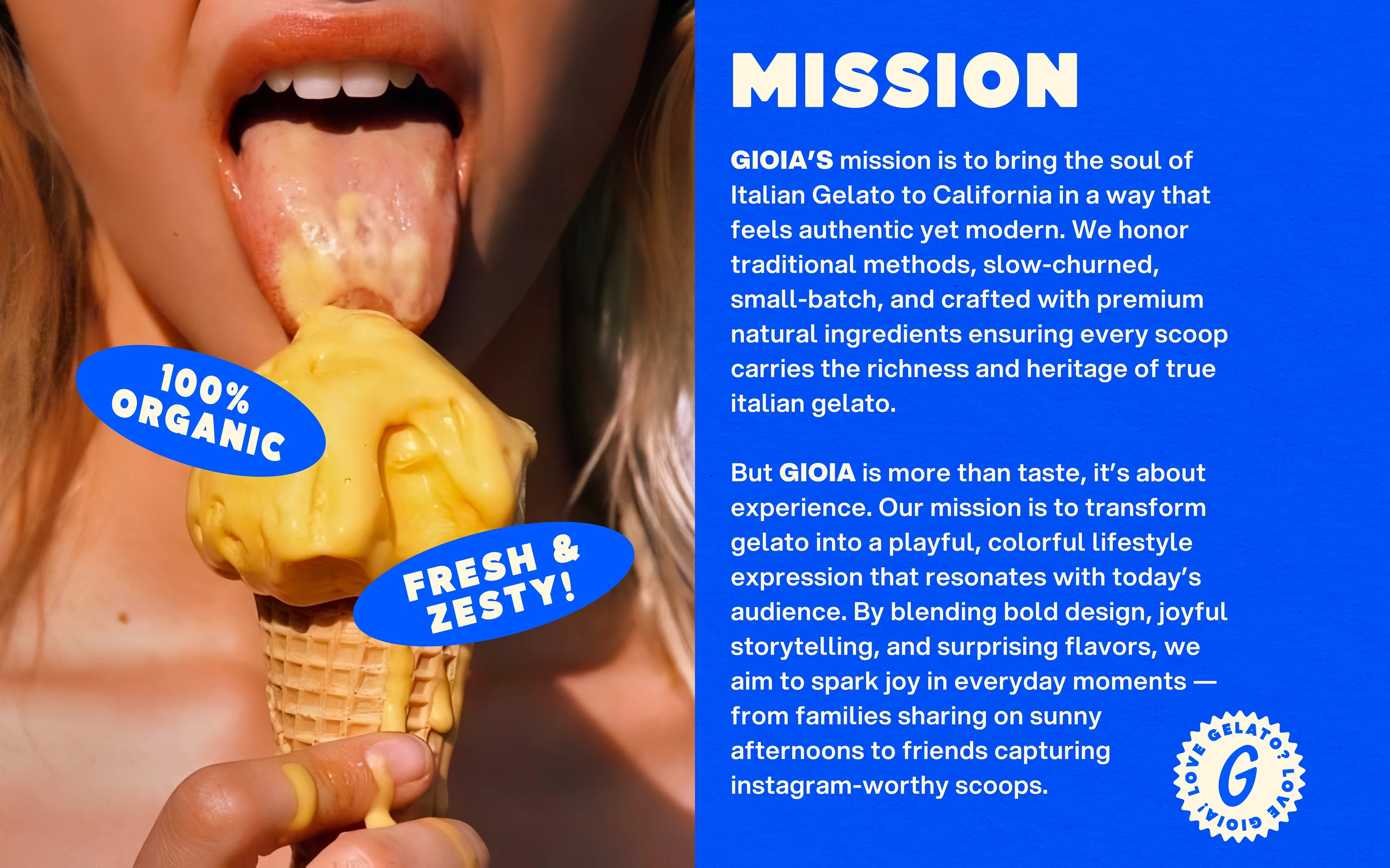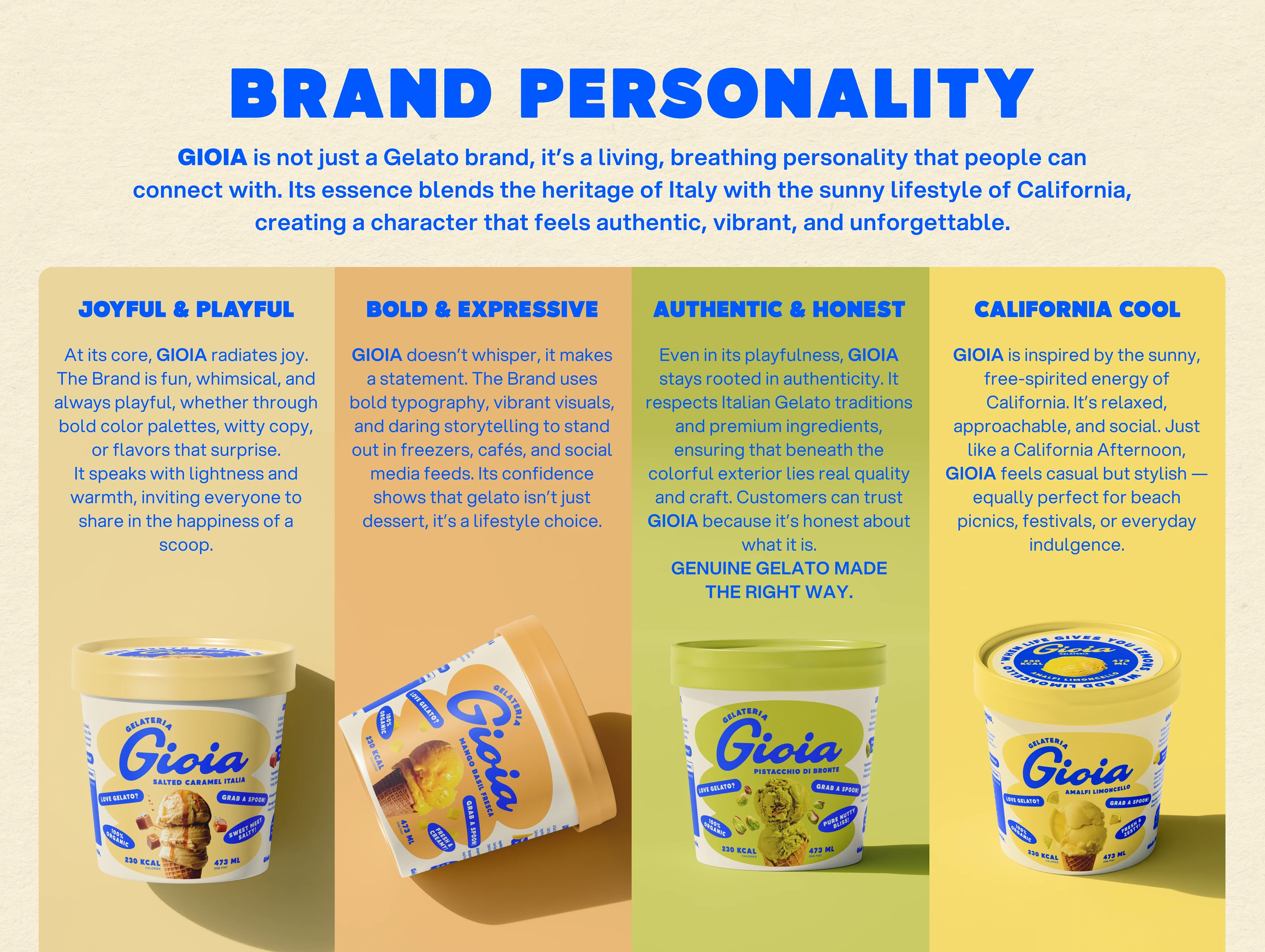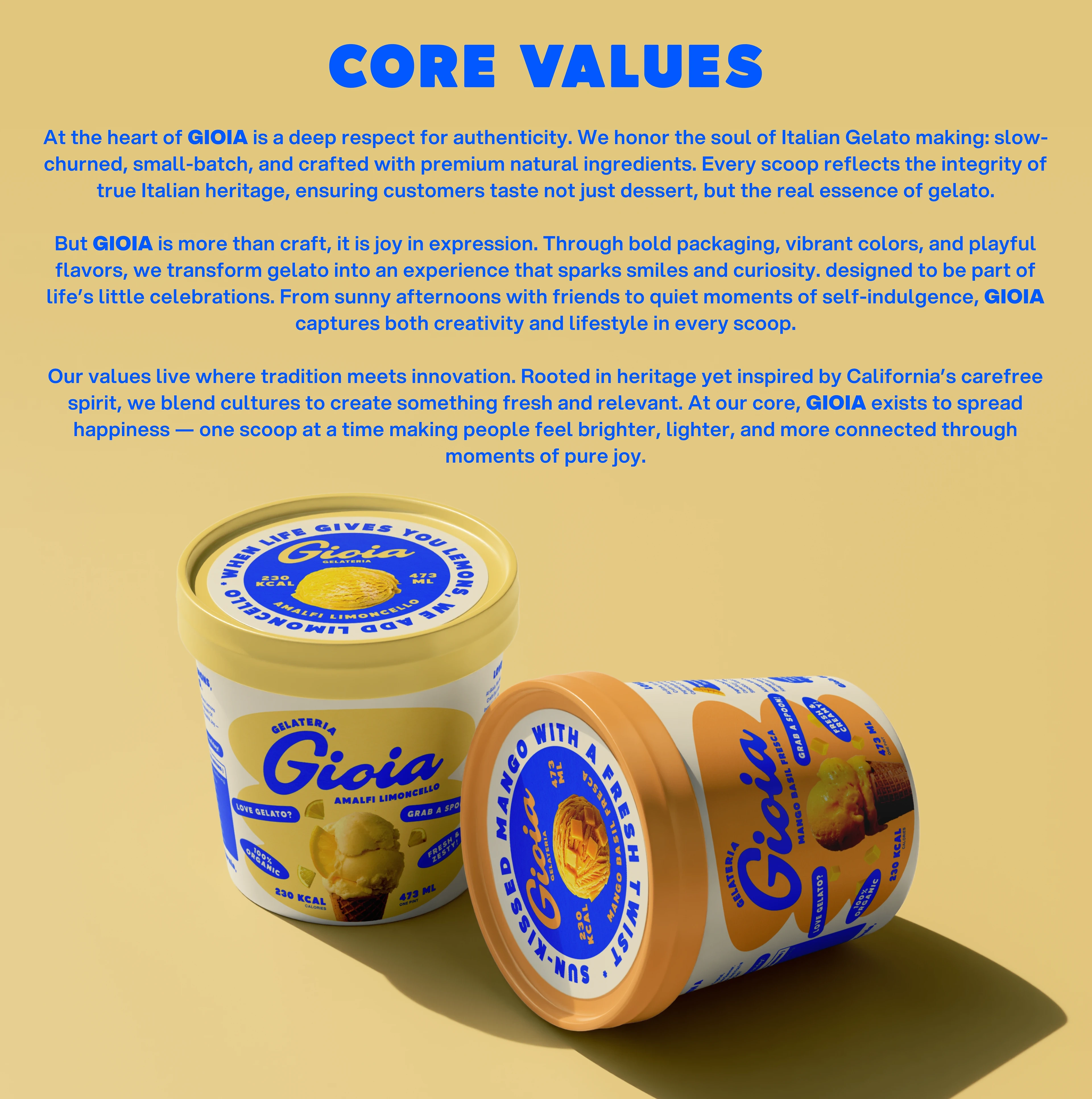 Gioia brings together the authentic craft of Italian gelato. With Gioia, every scoop is sunshine, every bite is celebration, and every tub is pure joy.