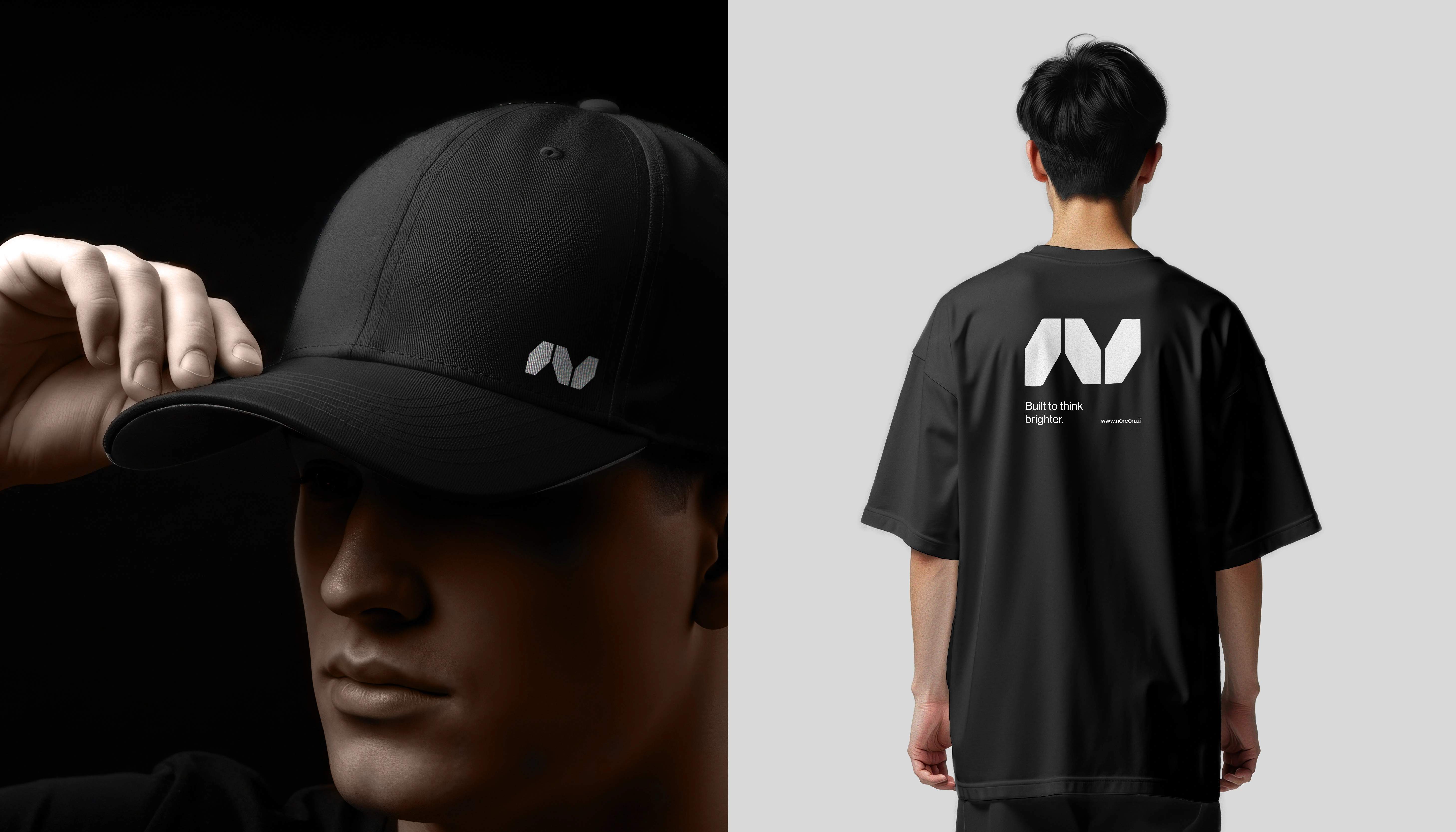 The identity centers around a sharp, futuristic monogram built from the letter “N” . Designed to evoke intelligence, structure, and bold simplicity. The system is clean, minimal, and engineered to scale across digital interfaces, product surfaces, and brand materials.