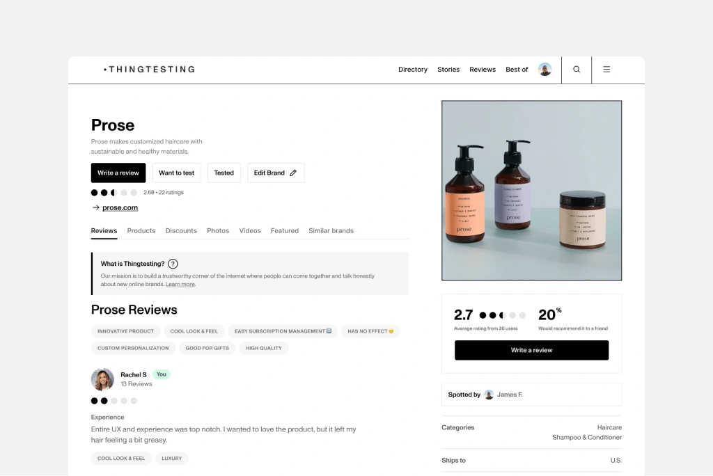 Thingtesting helps consumers shop better and brands are better. No other review solution focuses on today's online shoppers' specific needs and values.