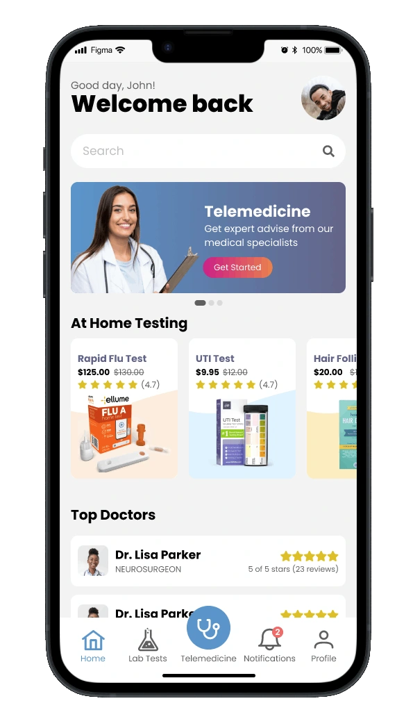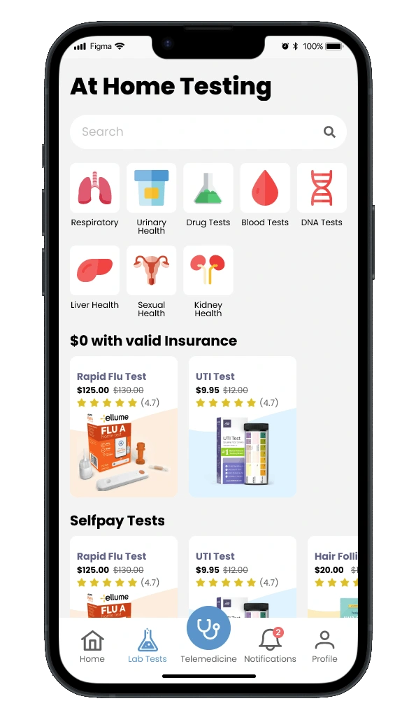 A design concept for a mobile-based application for ordering at-home lab tests and doctor visits.