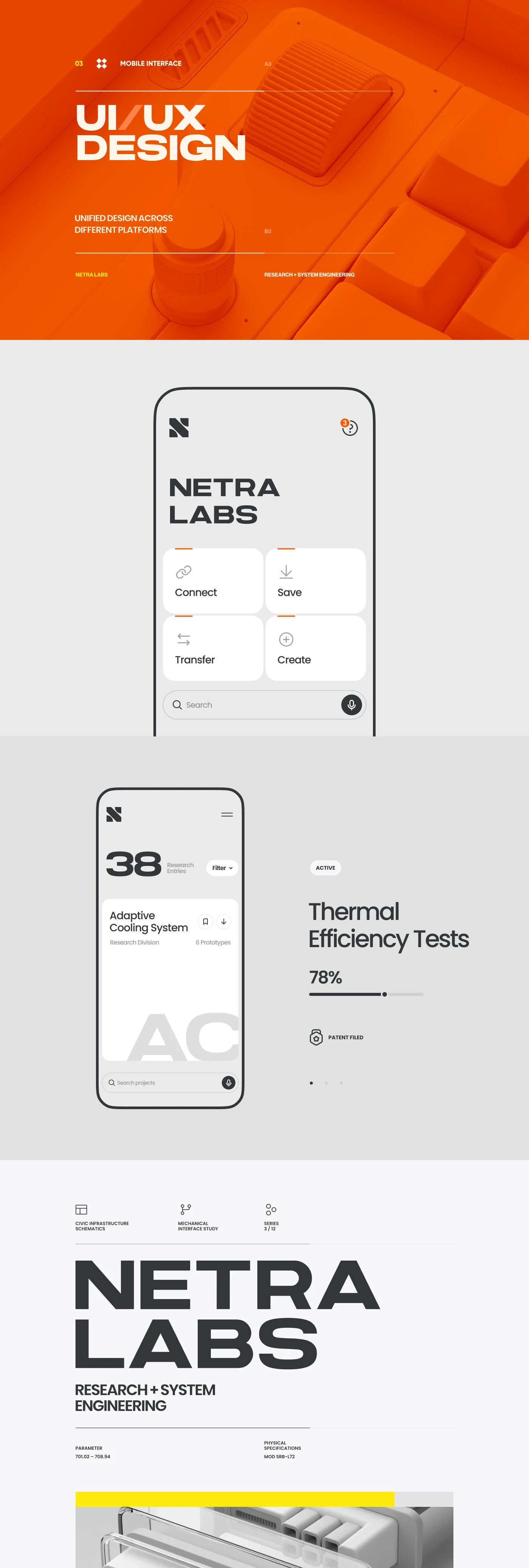 I took care of the project from the very beginning, setting the visual direction, building the design system, and shaping the overall vision of the brand. I created 3D models and renders, worked on animations, designed interface layouts, and prepared a complete brand book. My focus was on keeping everything simple, connected, and true to the spirit of Netra Labs.