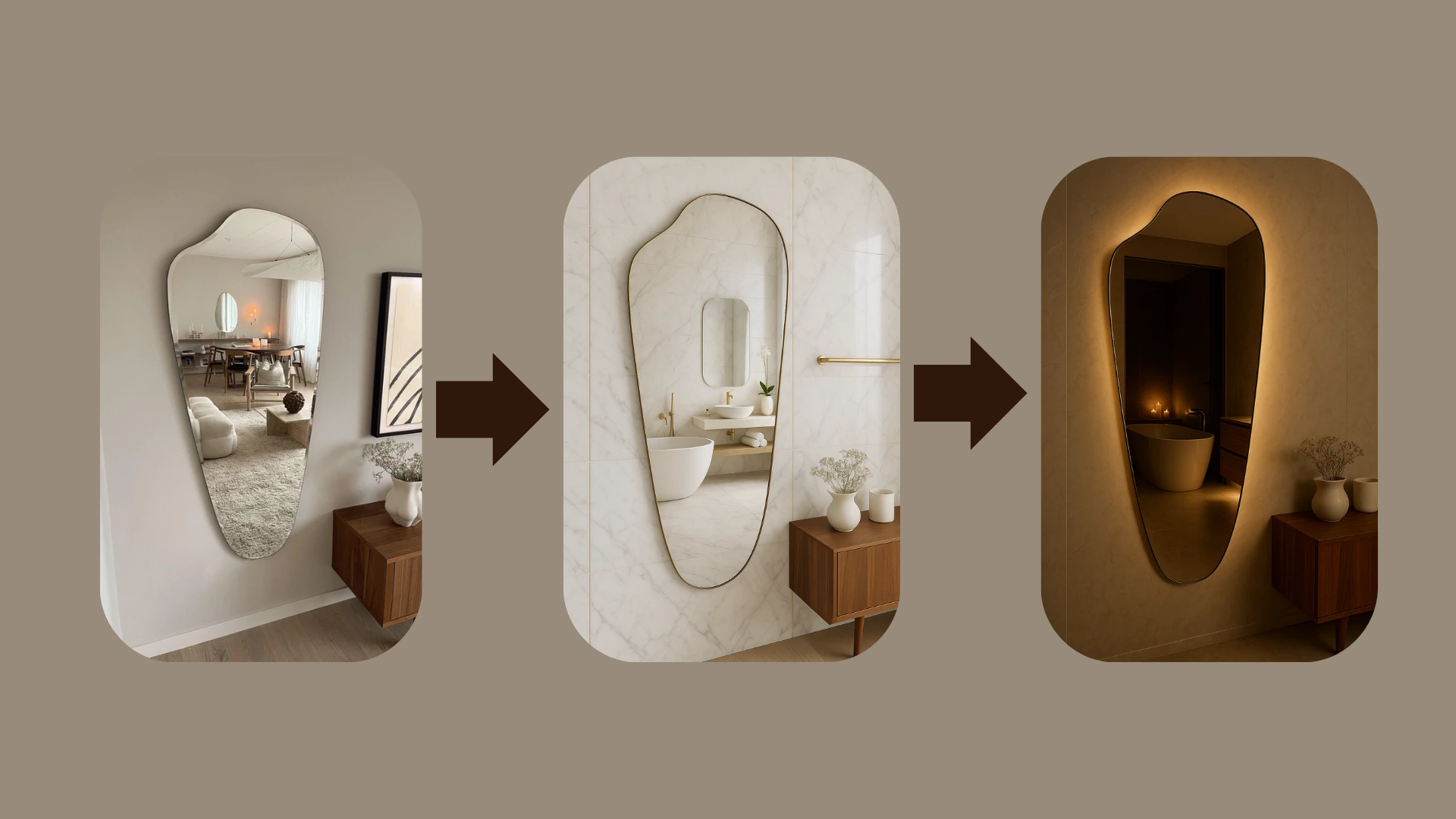 I editied the orignal photo and I change the backgraound behind and in the mirror. 2 concepts one in day nad one in night/evening