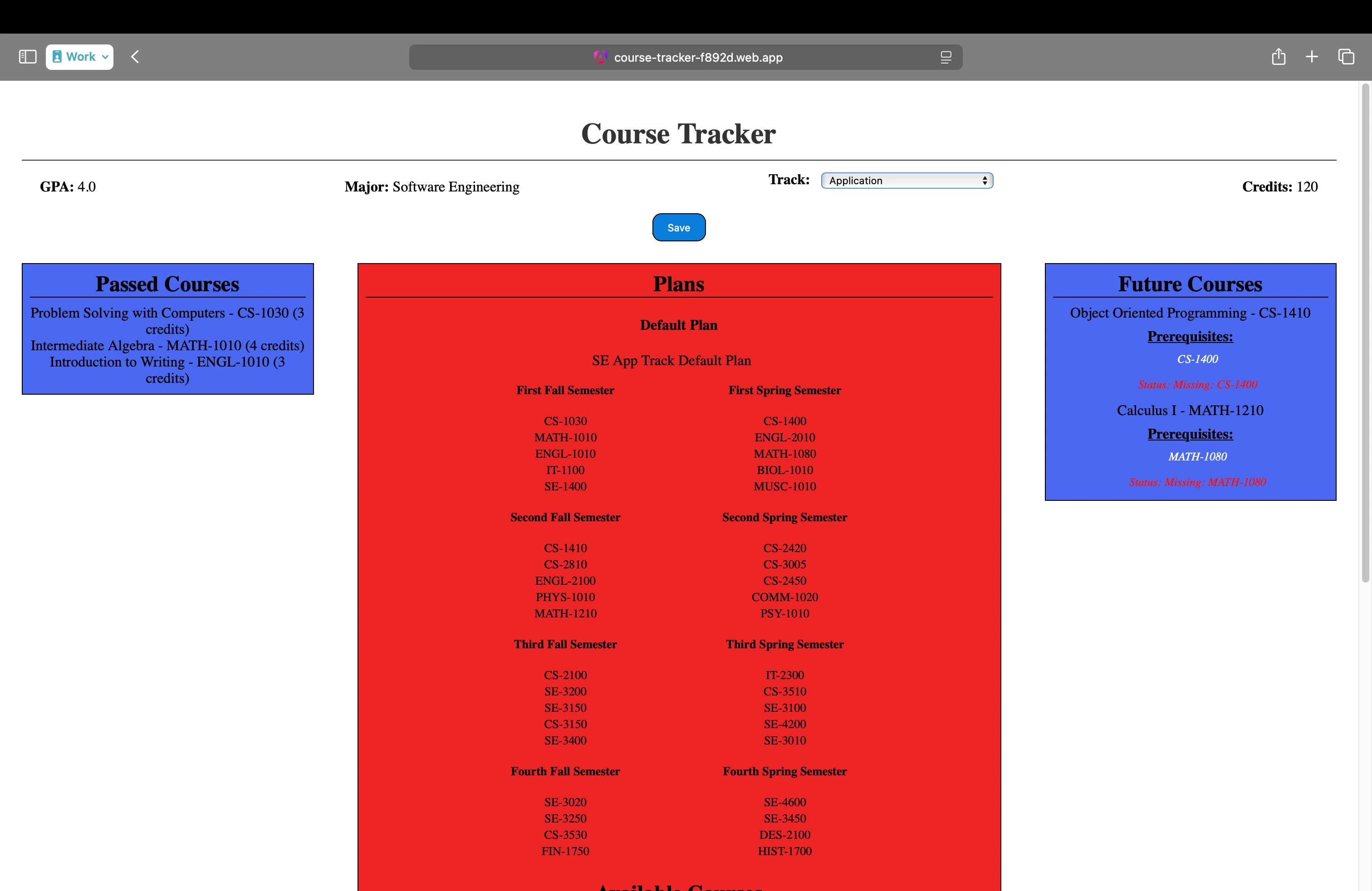 Developed a Course Tracker application for managing student course plans.